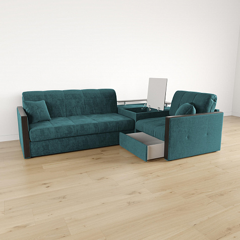 Вместительная система хранения. Под баром расположен вместительный короб, а в угловом модуле — глубокий ящик. В них удобно хранить одеяла, подушки, пледы и постельное белье.