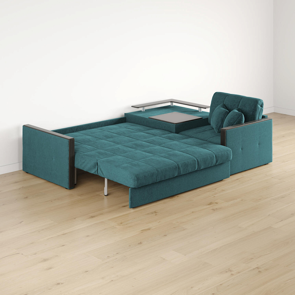 Угловой диван «Бристоль» с баром станет главным местом для отдыха и приема гостей. Модель оснащена баром, на котором можно расположить еду и напитки во время просмотра фильмов и сериалов. Вместительный короб и ящик для постельных принадлежностей. Благодаря механизму трансформации «Аккордеон» диван легко превращается в полноценную кровать для двух человек. Пропорциональные формы, плавные линии декоративного канта подчеркивают лаконичный дизайн, поэтому диван подойдет для любого современного интерьера.