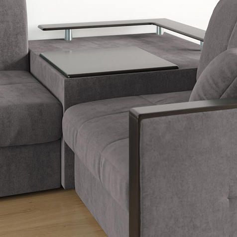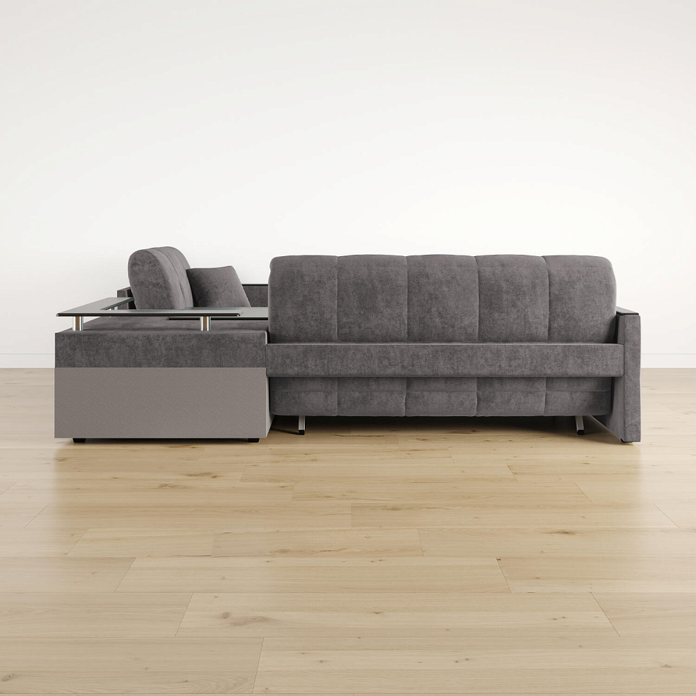 Угловой диван «Бристоль» с баром станет главным местом для отдыха и приема гостей. Модель оснащена баром, на котором можно расположить еду и напитки во время просмотра фильмов и сериалов. Вместительный короб и ящик для постельных принадлежностей. Благодаря механизму трансформации «Аккордеон» диван легко превращается в полноценную кровать для двух человек. Пропорциональные формы, плавные линии декоративного канта подчеркивают лаконичный дизайн, поэтому диван подойдет для любого современного интерьера.