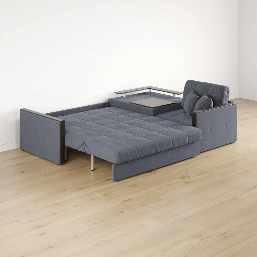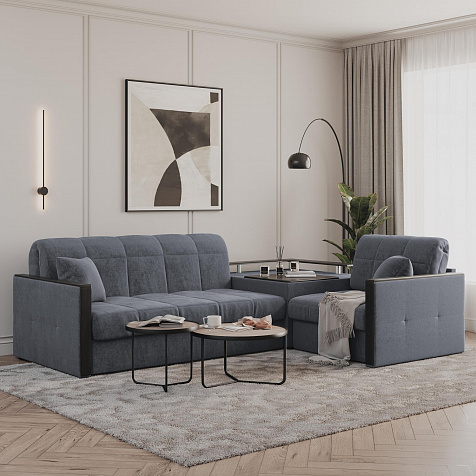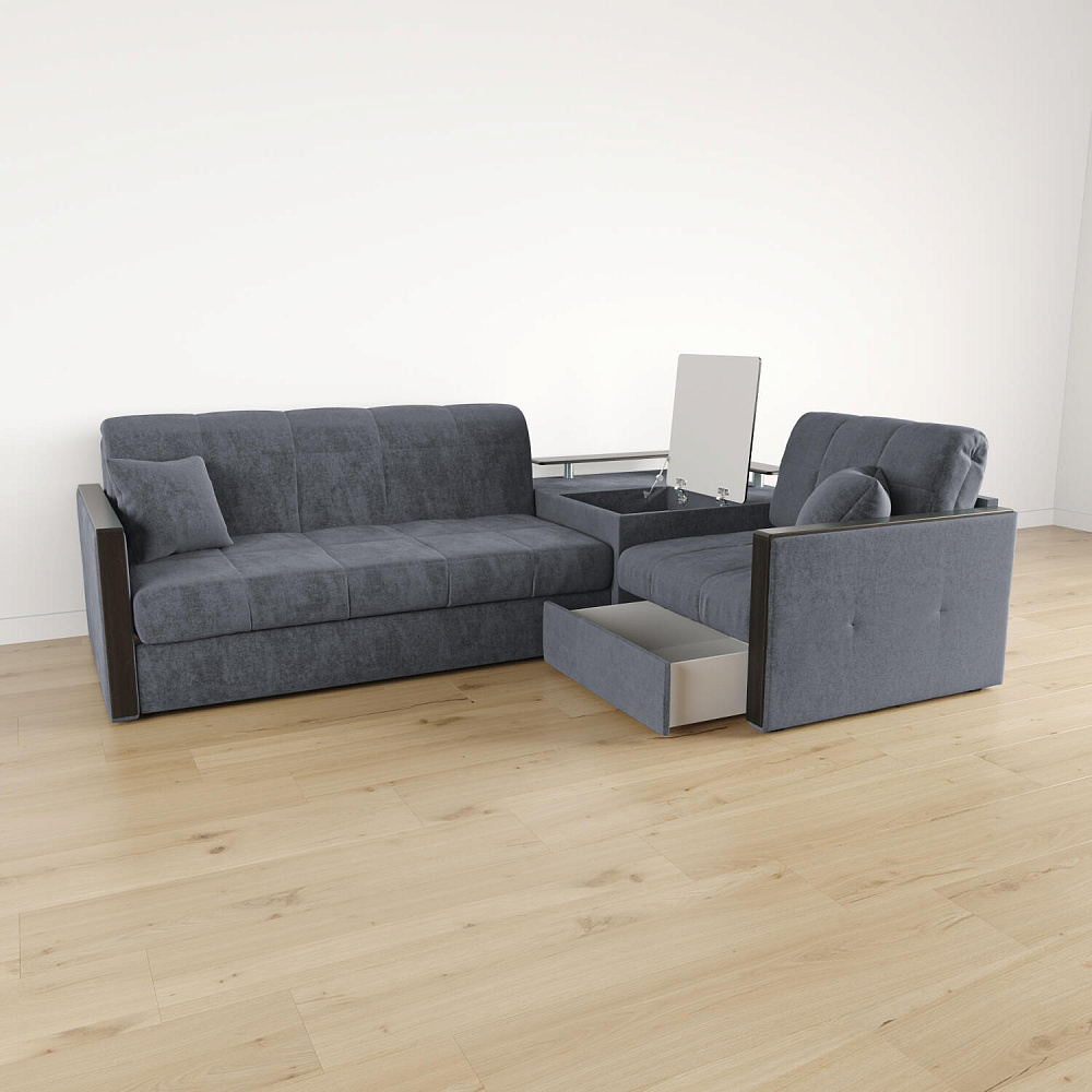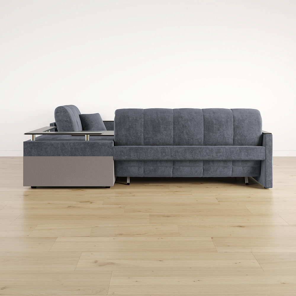 Угловой диван «Бристоль» с баром станет главным местом для отдыха и приема гостей. Модель оснащена баром, на котором можно расположить еду и напитки во время просмотра фильмов и сериалов. Вместительный короб и ящик для постельных принадлежностей. Благодаря механизму трансформации «Аккордеон» диван легко превращается в полноценную кровать для двух человек. Пропорциональные формы, плавные линии декоративного канта подчеркивают лаконичный дизайн, поэтому диван подойдет для любого современного интерьера.