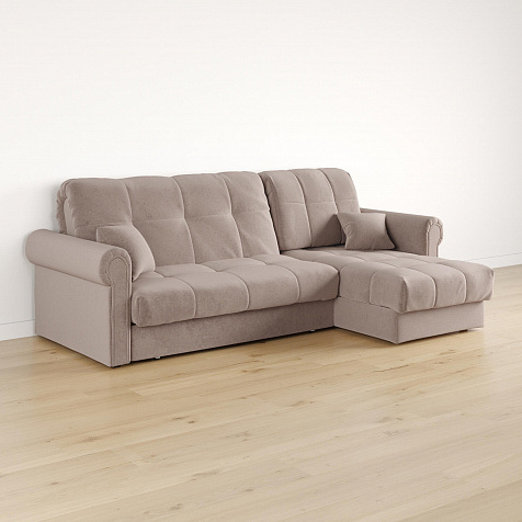- Универсальный угол. Диван подстроится под условия помещения — оттоманка устанавливается как слева, так и справа.
