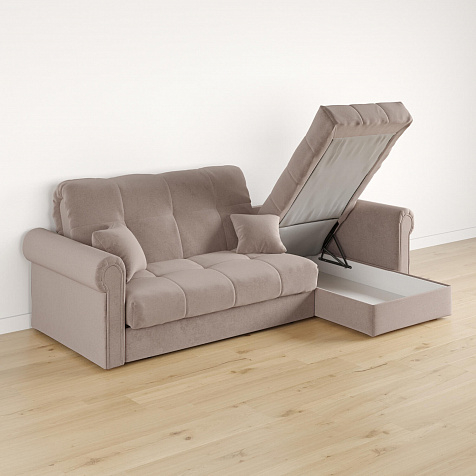 - Короб для белья. В оттоманке дивана скрыт просторный бельевой ящик, в котором можно разместить все необходимые постельные принадлежности.
