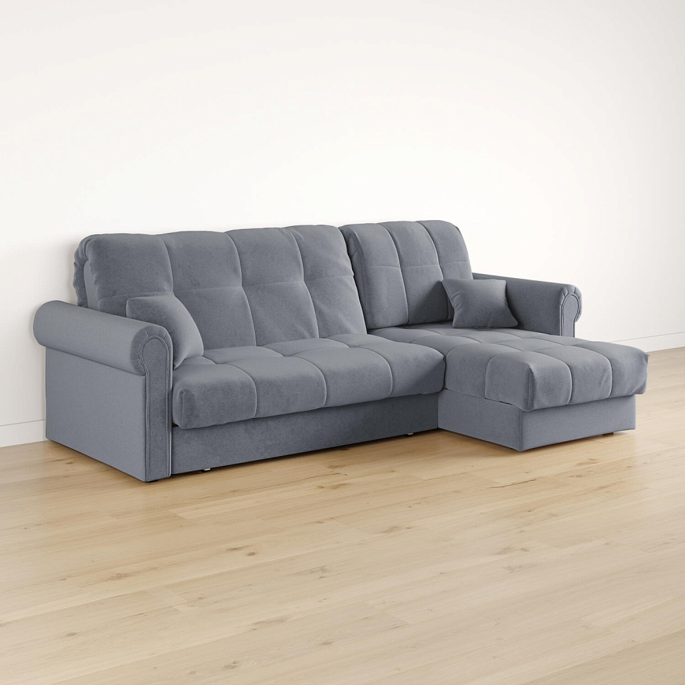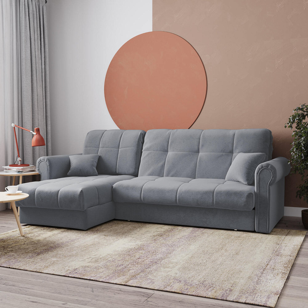 - Универсальный угол. Диван подстроится под условия помещения — оттоманка устанавливается как слева, так и справа.