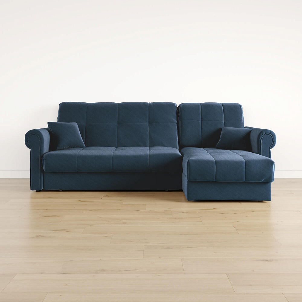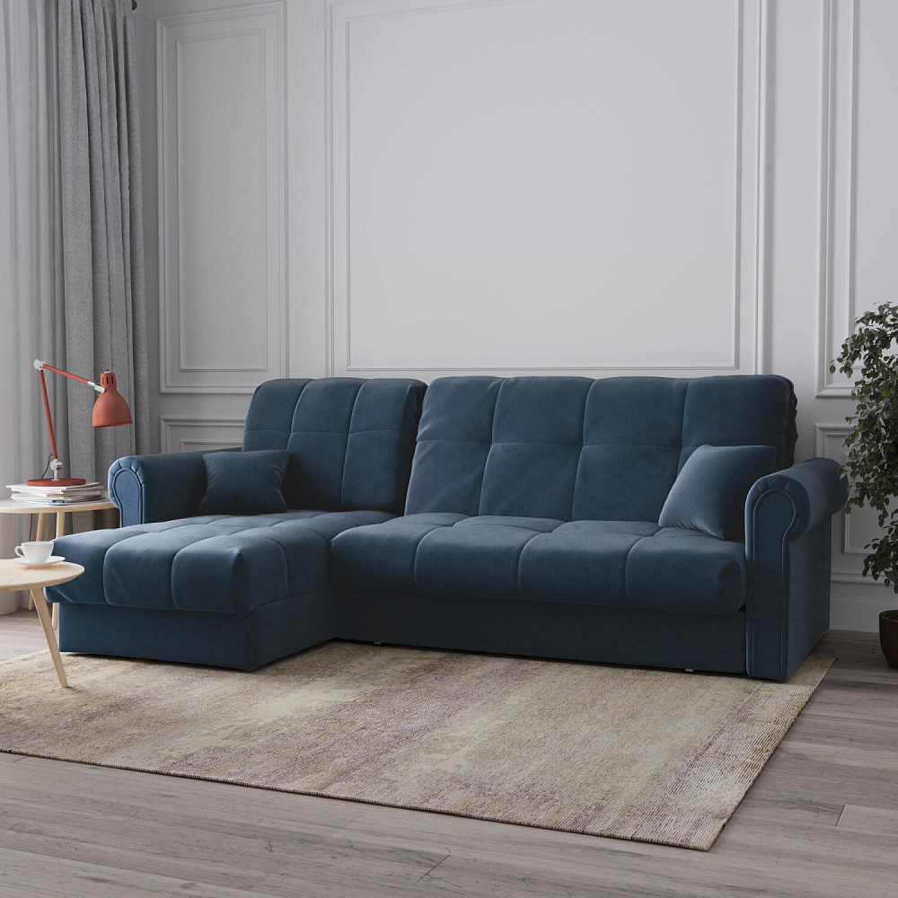 - Универсальный угол. Диван подстроится под условия помещения — оттоманка устанавливается как слева, так и справа.
