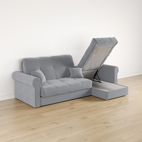 - Универсальный угол. Диван подстроится под условия помещения — оттоманка устанавливается как слева, так и справа.