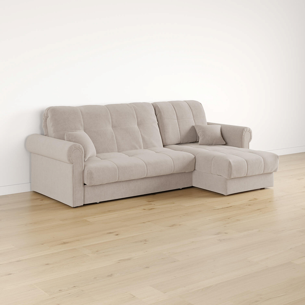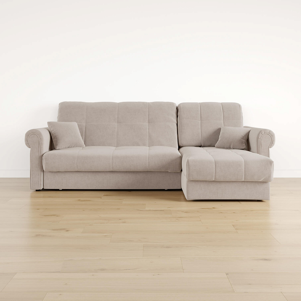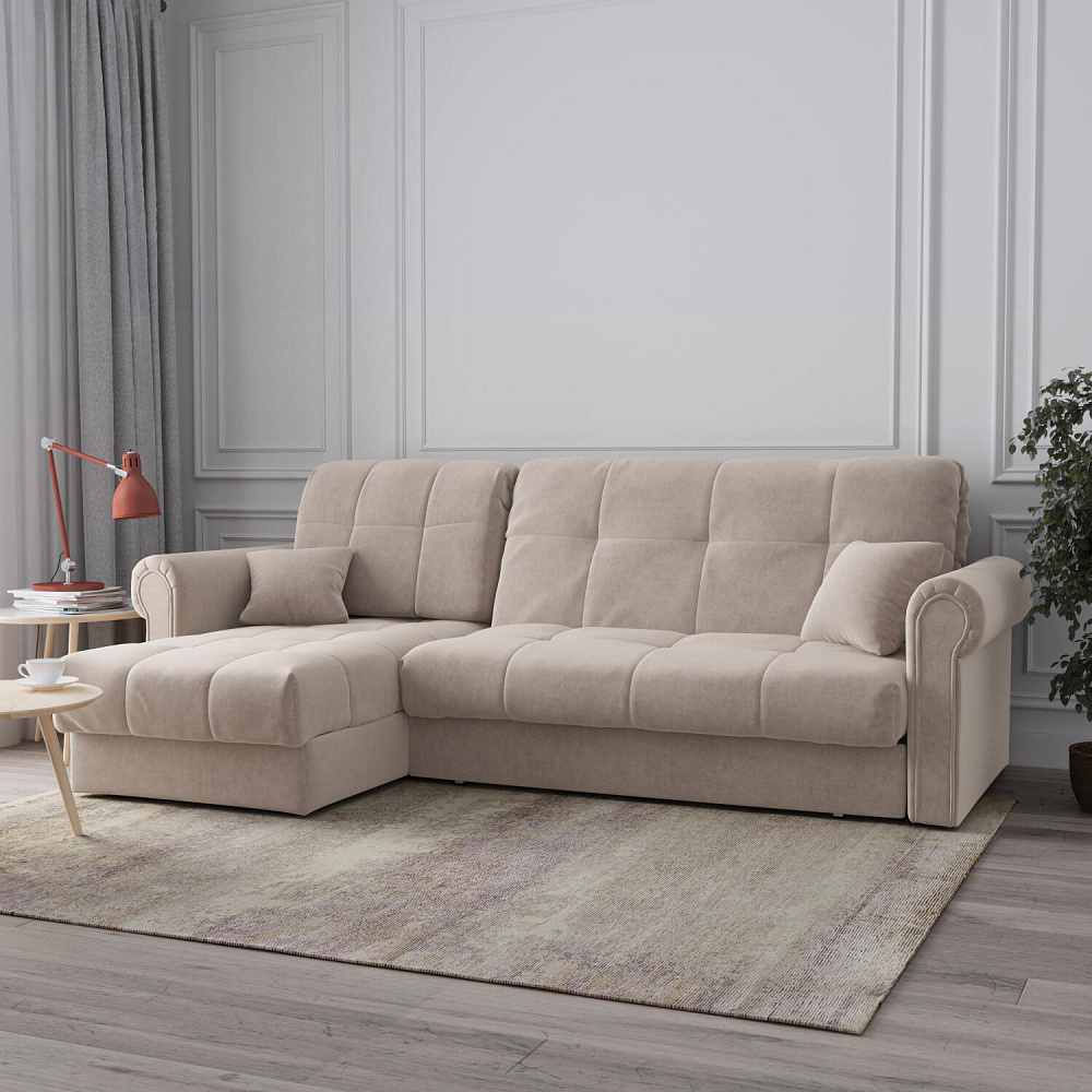 - Универсальный угол. Диван подстроится под условия помещения — оттоманка устанавливается как слева, так и справа.