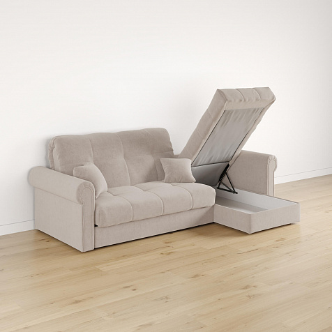- Короб для белья. В оттоманке дивана скрыт просторный бельевой ящик, в котором можно разместить все необходимые постельные принадлежности.