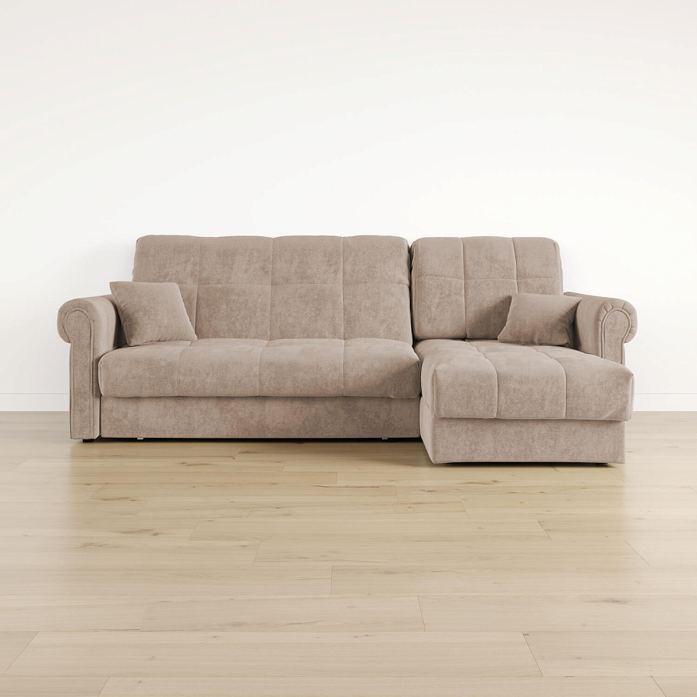 - Универсальный угол. Диван подстроится под условия помещения — оттоманка устанавливается как слева, так и справа.