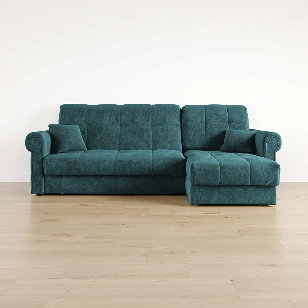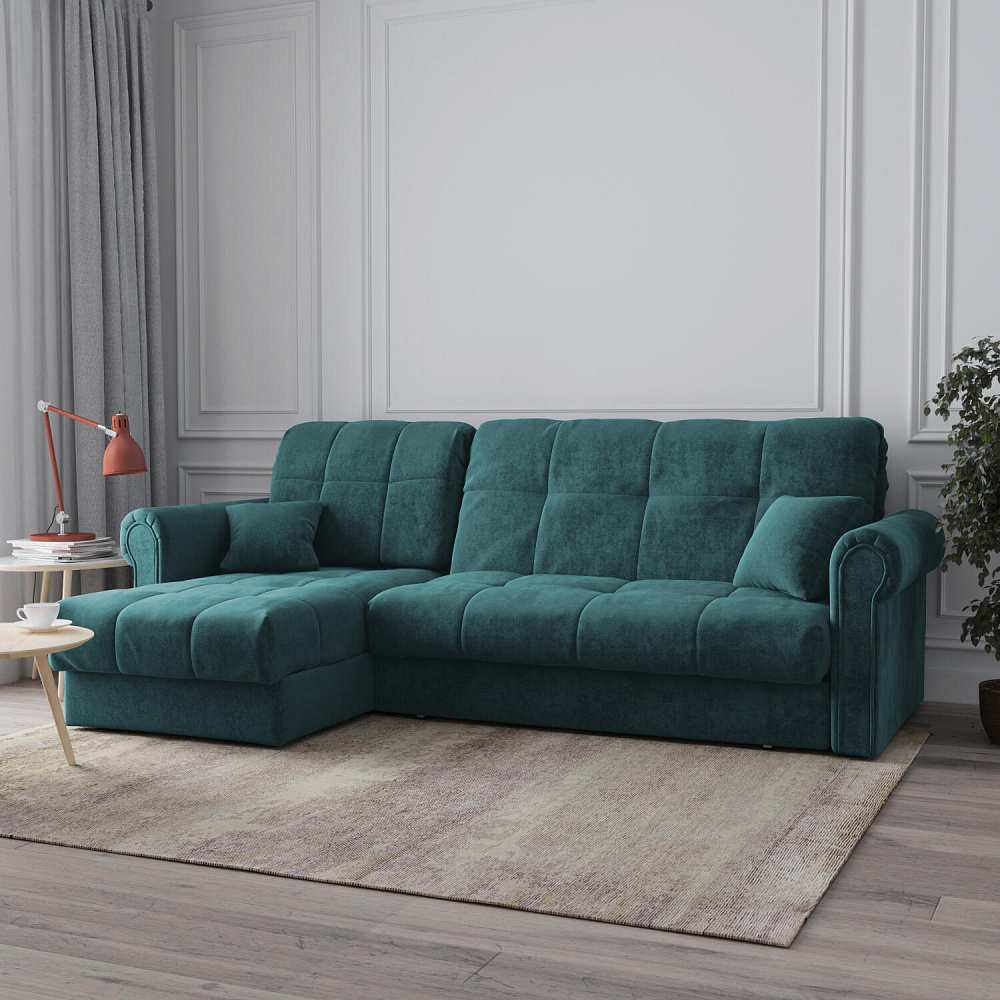 - Универсальный угол. Диван подстроится под условия помещения — оттоманка устанавливается как слева, так и справа.