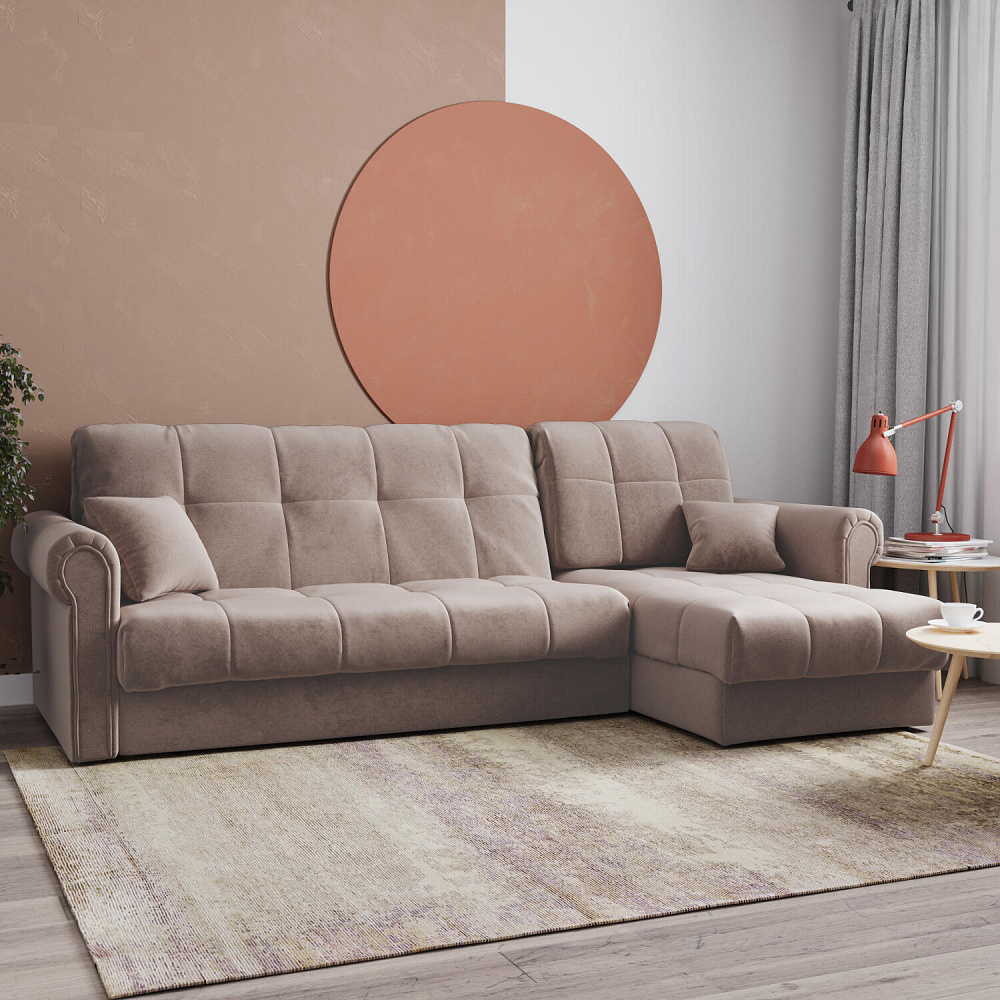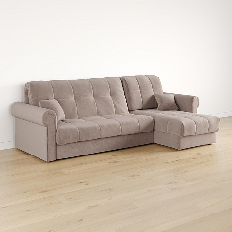 - Универсальный угол. Диван подстроится под условия помещения — оттоманка устанавливается как слева, так и справа.