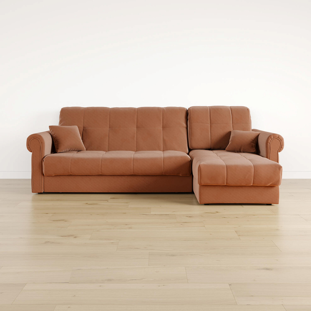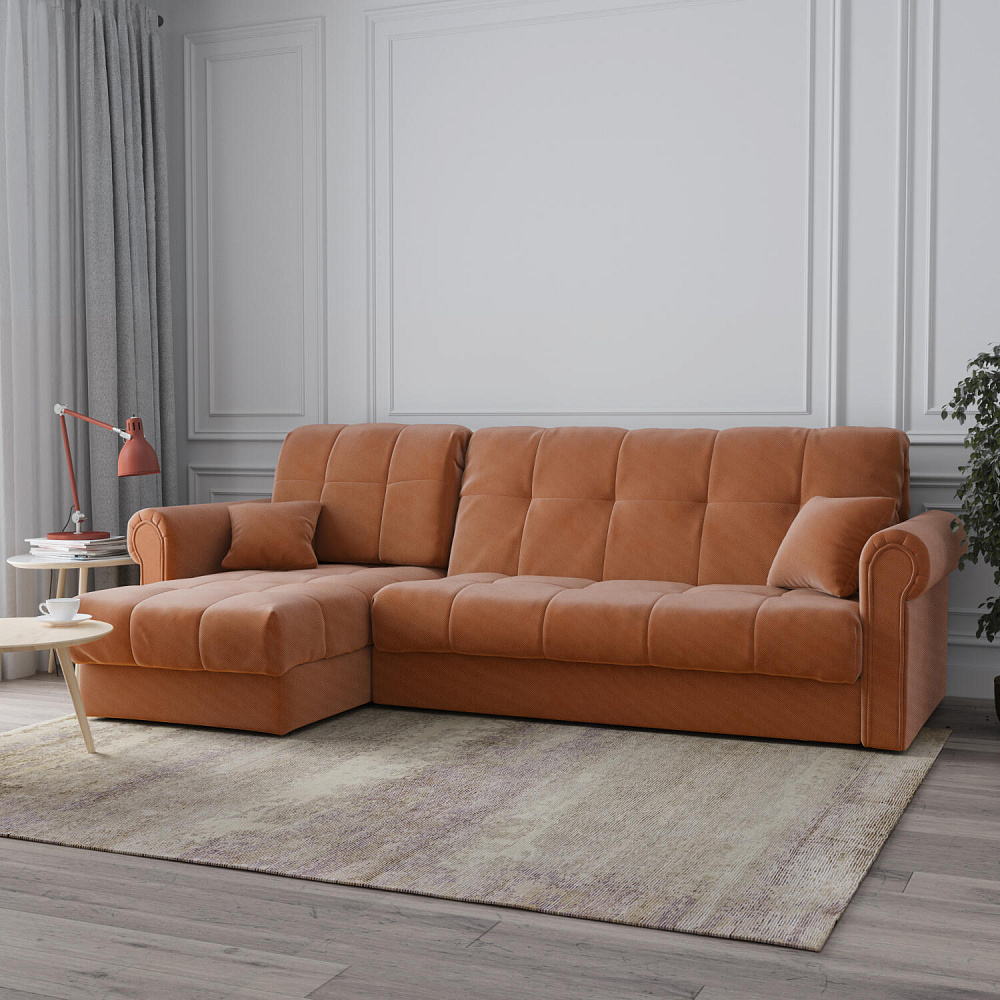 - Универсальный угол. Диван подстроится под условия помещения — оттоманка устанавливается как слева, так и справа.