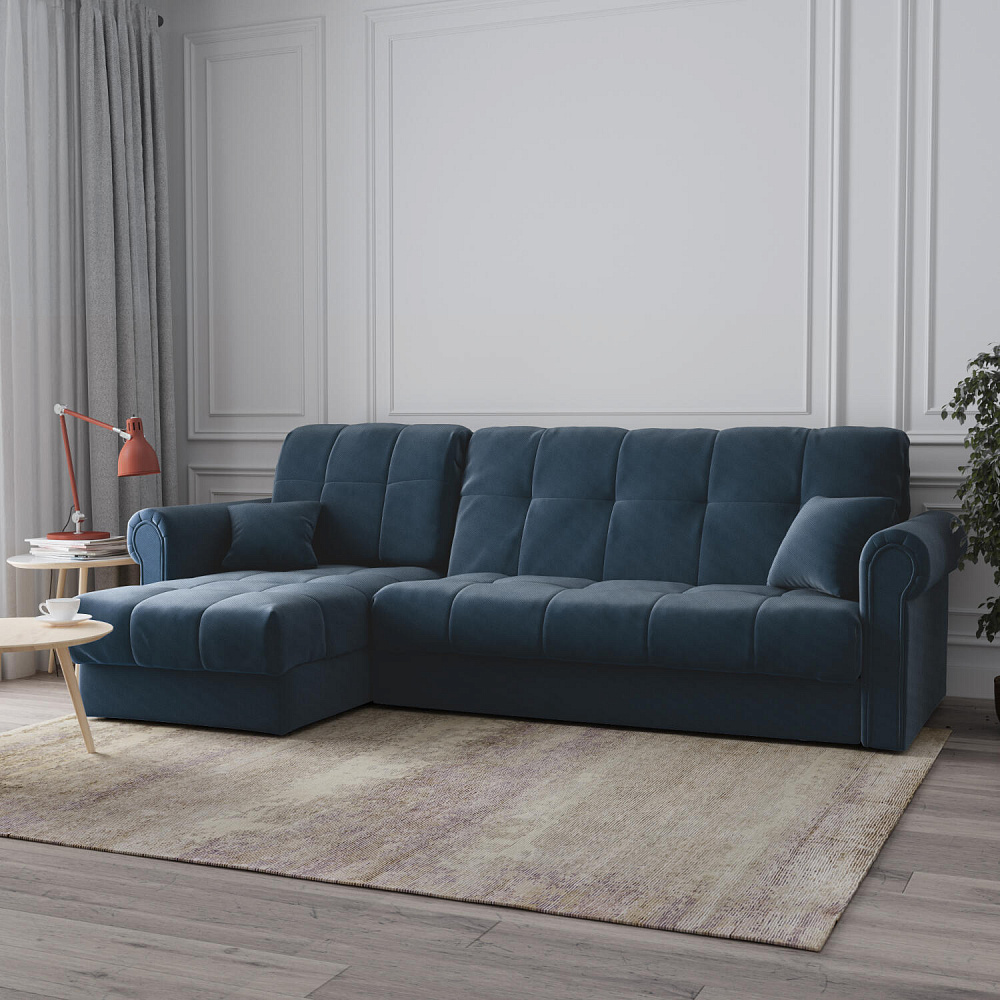 - Универсальный угол. Диван подстроится под условия помещения — оттоманка устанавливается как слева, так и справа.