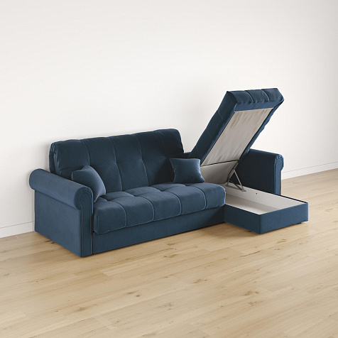 - Короб для белья. В оттоманке дивана скрыт просторный бельевой ящик, в котором можно разместить все необходимые постельные принадлежности.