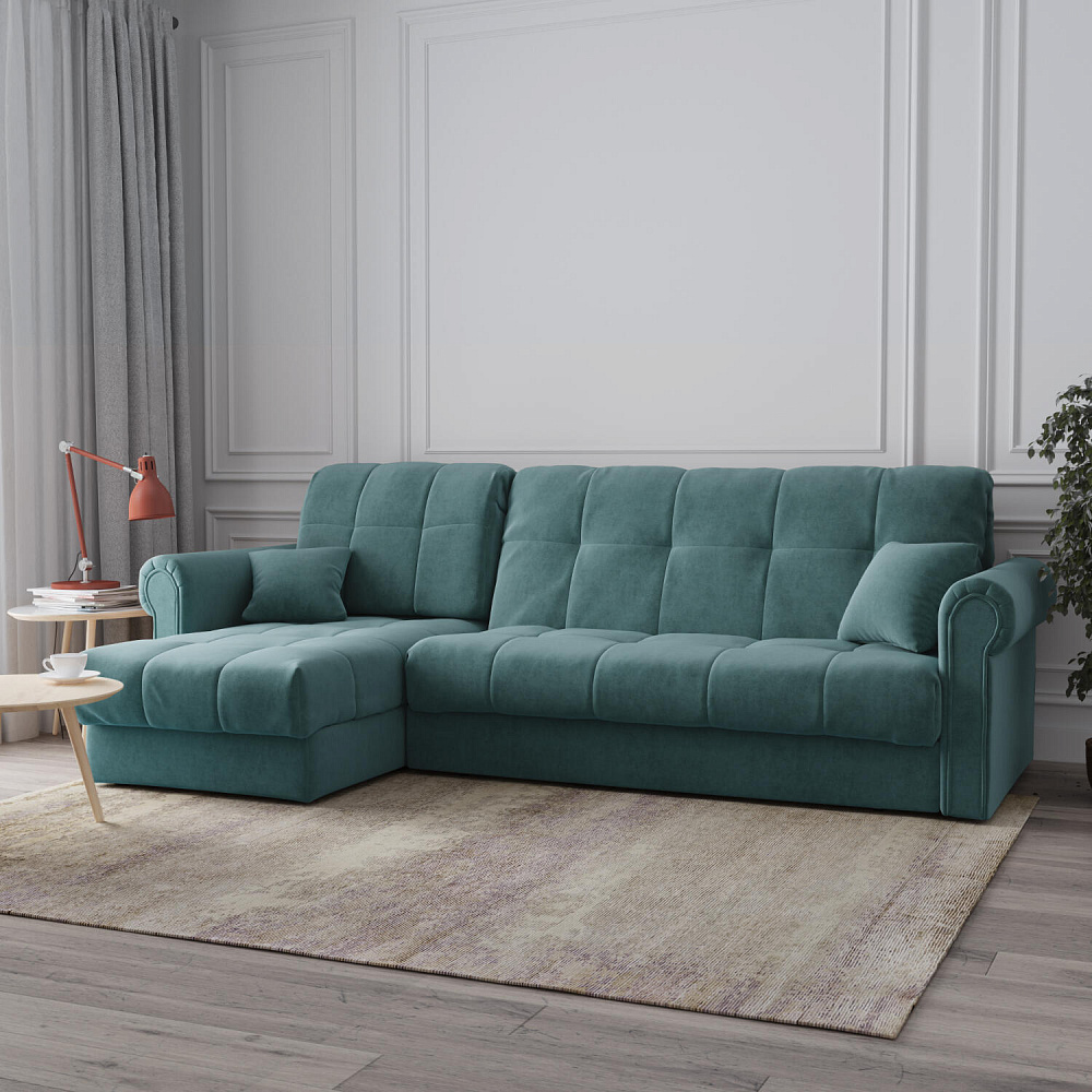 - Универсальный угол. Диван подстроится под условия помещения — оттоманка устанавливается как слева, так и справа.