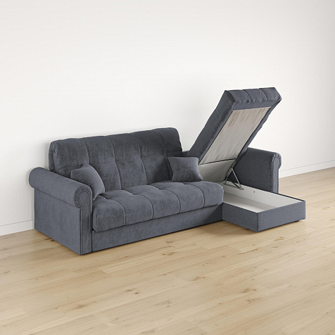 - Короб для белья. В оттоманке дивана скрыт просторный бельевой ящик, в котором можно разместить все необходимые постельные принадлежности.