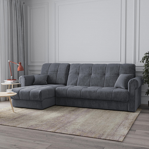 - Универсальный угол. Диван подстроится под условия помещения — оттоманка устанавливается как слева, так и справа.