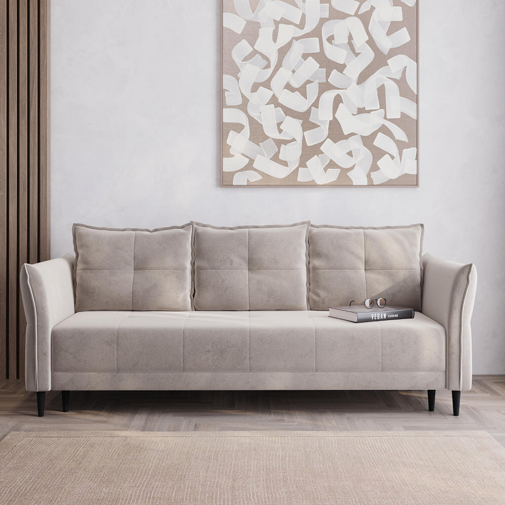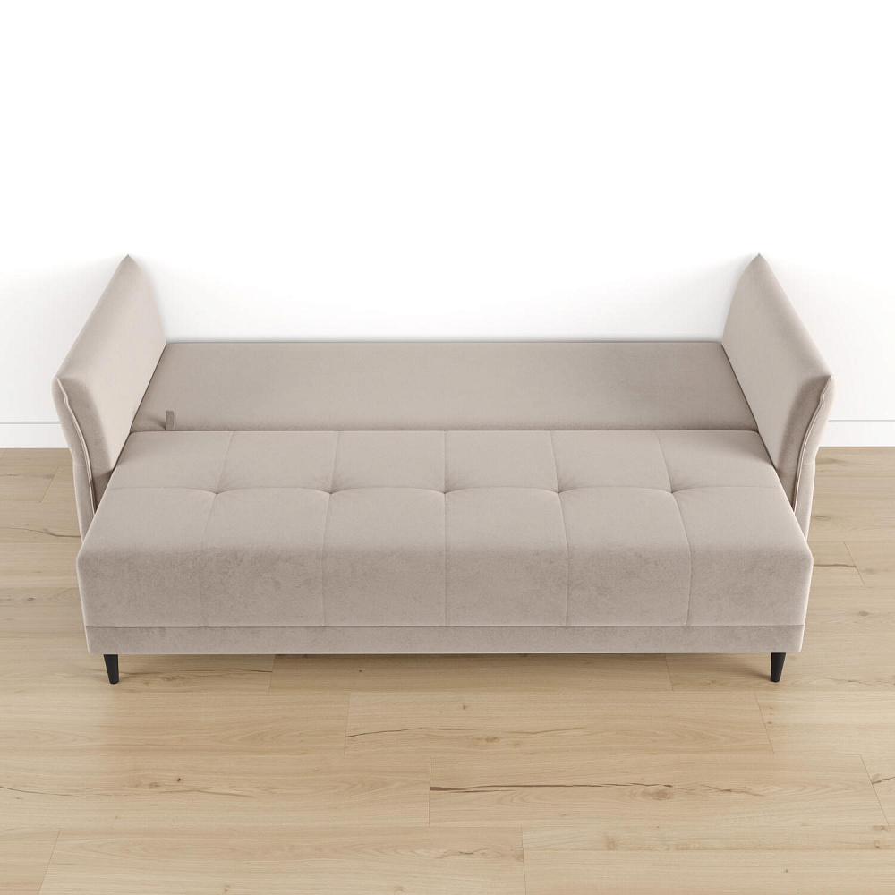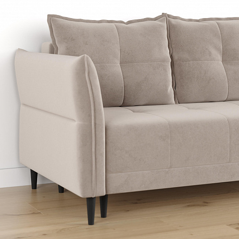 Механизм трансформации «Еврокнижка». Диван легко раскладывается — нужно выдвинуть вперед сиденье и опустить спинку. Удобен механизм ещё тем, что двигается только передняя часть, поэтому отодвигать диван от стены не требуется.