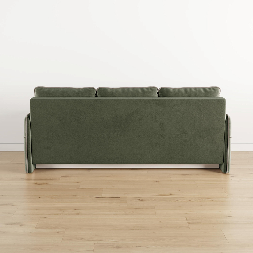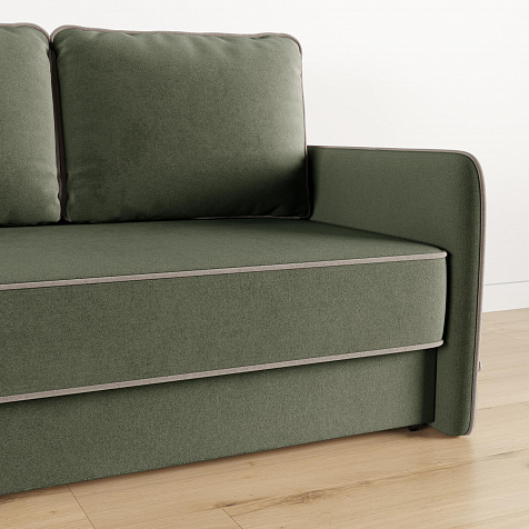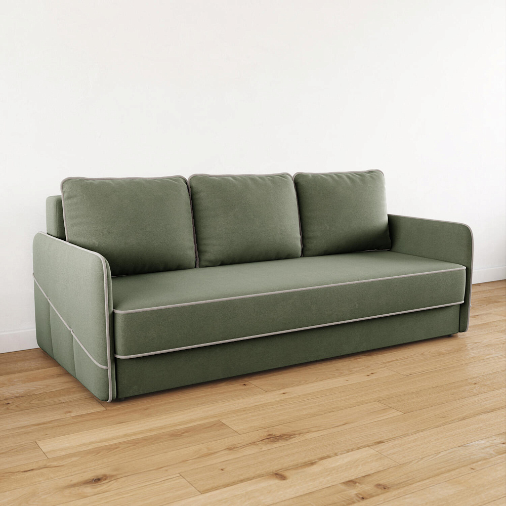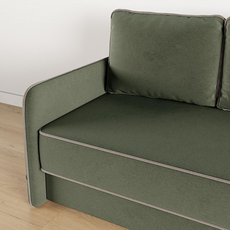Диван «Симпл» станет стильным акцентом в современной гостиной. Контрастный кант на обивке из мягкого велюра придаёт дизайну дивана завершённый вид и подчёркивает мягкую геометричность. Механизм трансформации «Еврокнижка» в сложенном виде позволяет сэкономить пространство в комнате, в разложенном — обеспечивает комфортное и ровное спальное место. Спинка дивана выполнена в той же обивке, что и основная часть, что даёт возможность использовать диван для зонирования комнаты.