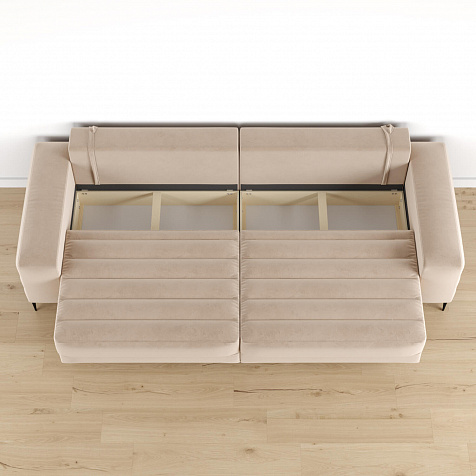 Механизм трансформации «Пантограф» подходит для ежедневного использования. Сиденье выдвигается вверх и вперед, таким образом «шагающий» механизм не оставляет следов на напольном покрытии. Дополнительные опоры добавляют устойчивости спальному месту и видны только когда диван разложен.