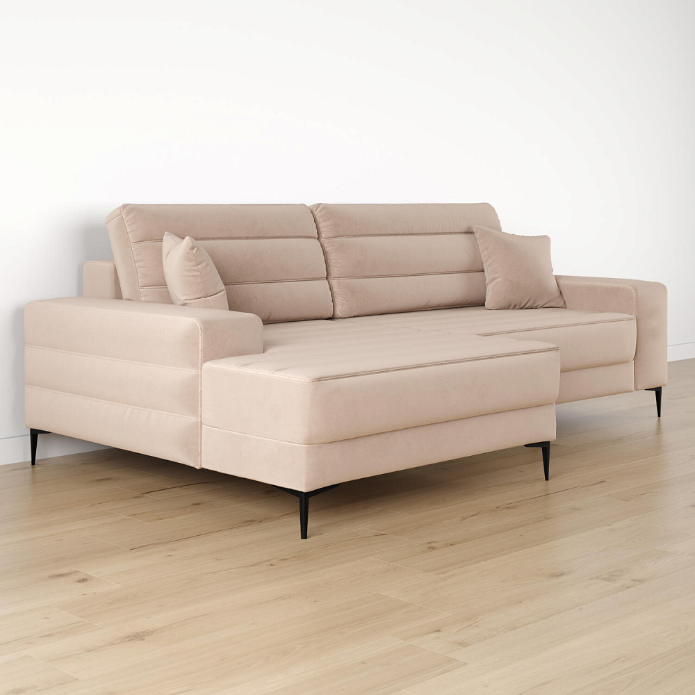 Угловой диван «Лиам» — превосходное сочетание стиля, функциональности и эргономики. Прямоугольные формы, горизонтальная строчка на каждом элементе дивана и тонкие черные опоры подчеркивают элегантный дизайн модели. Простой в использовании механизм трансформации поможет быстро разложить диван и создать просторное спальное место. Также «Лиам» имеет вместительное место хранения под сиденьем для множества вещей.