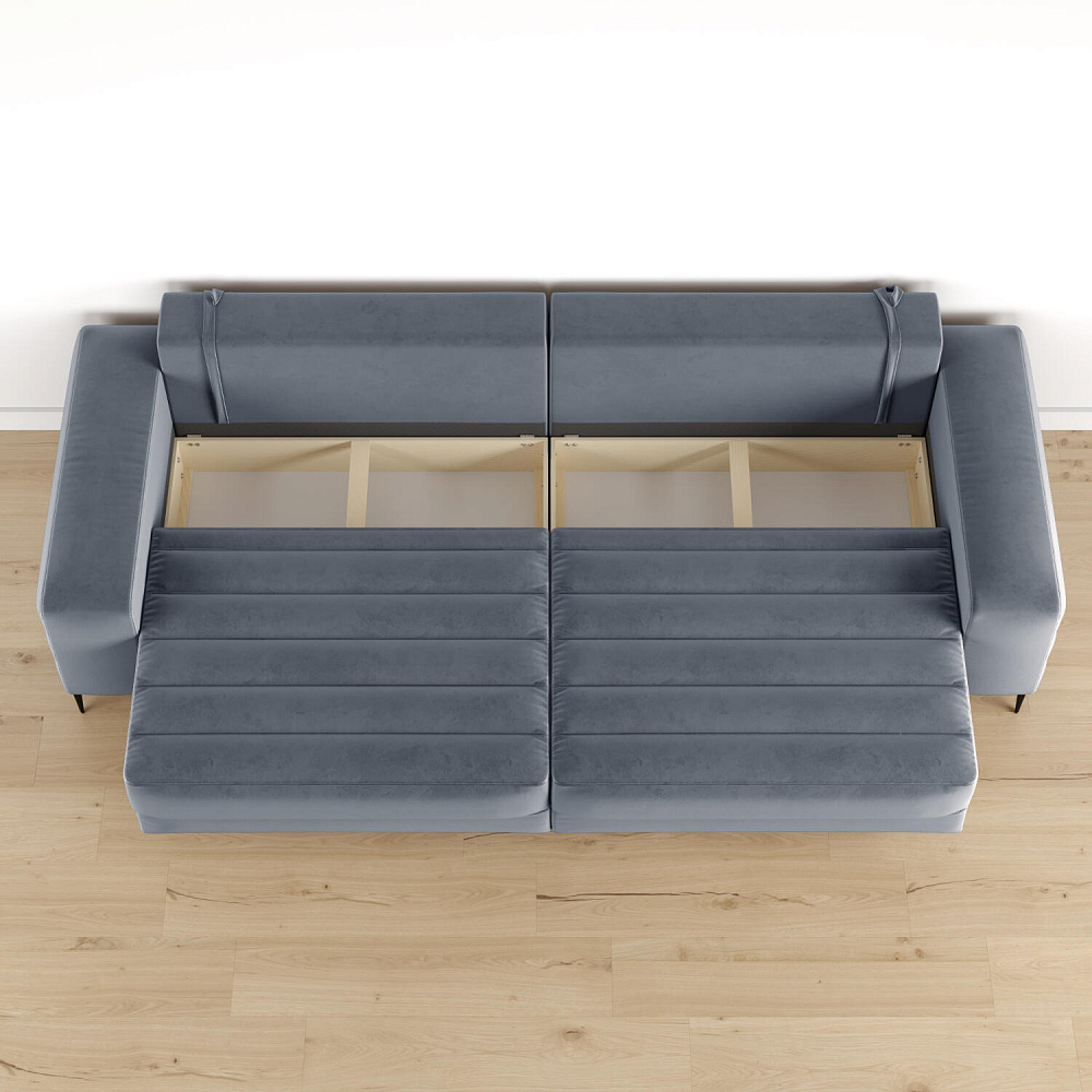 Механизм трансформации «Пантограф» подходит для ежедневного использования. Сиденье выдвигается вверх и вперед, таким образом «шагающий» механизм не оставляет следов на напольном покрытии. Дополнительные опоры добавляют устойчивости спальному месту и видны только когда диван разложен.