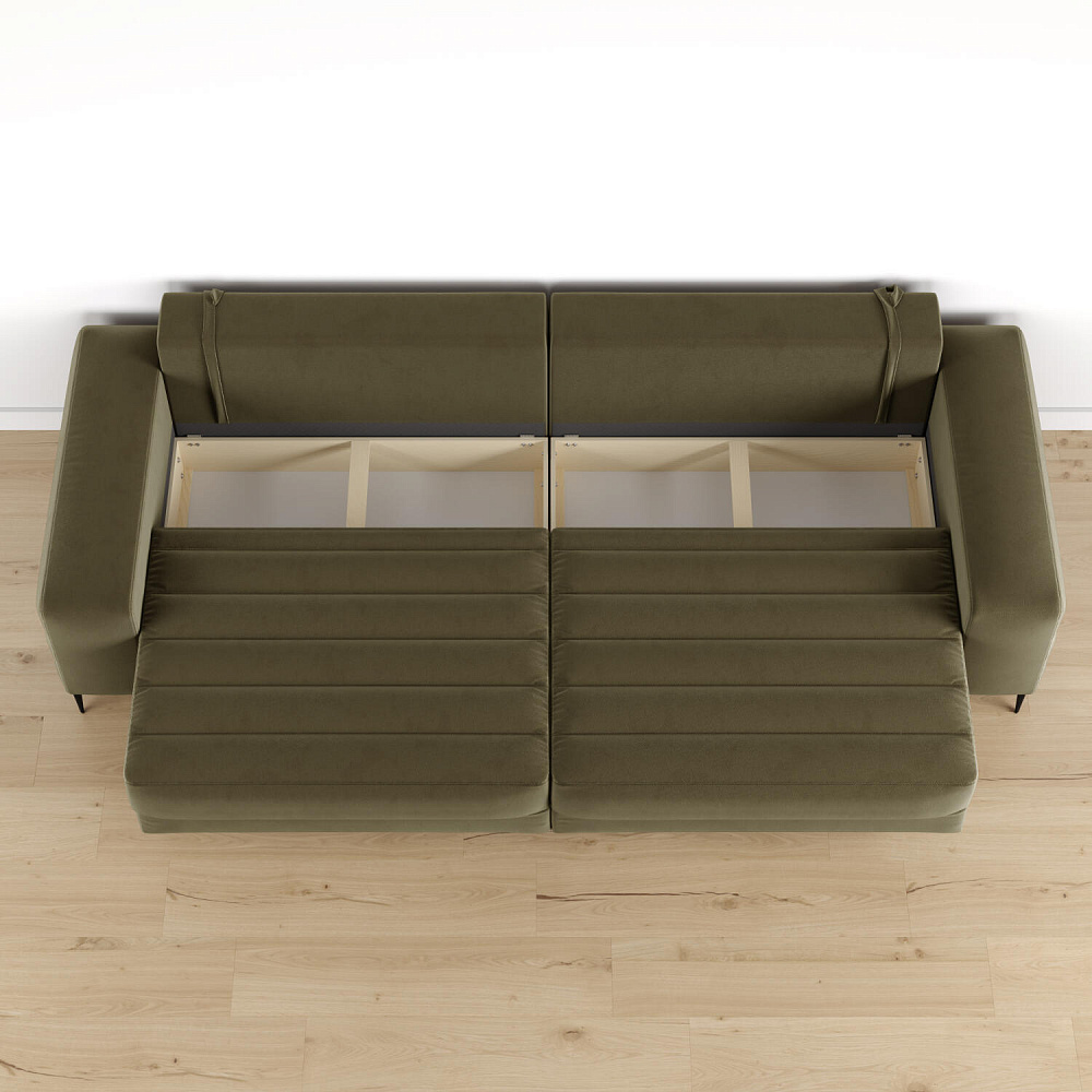 Механизм трансформации «Пантограф» подходит для ежедневного использования. Сиденье выдвигается вверх и вперед, таким образом «шагающий» механизм не оставляет следов на напольном покрытии. Дополнительные опоры добавляют устойчивости спальному месту и видны только когда диван разложен.