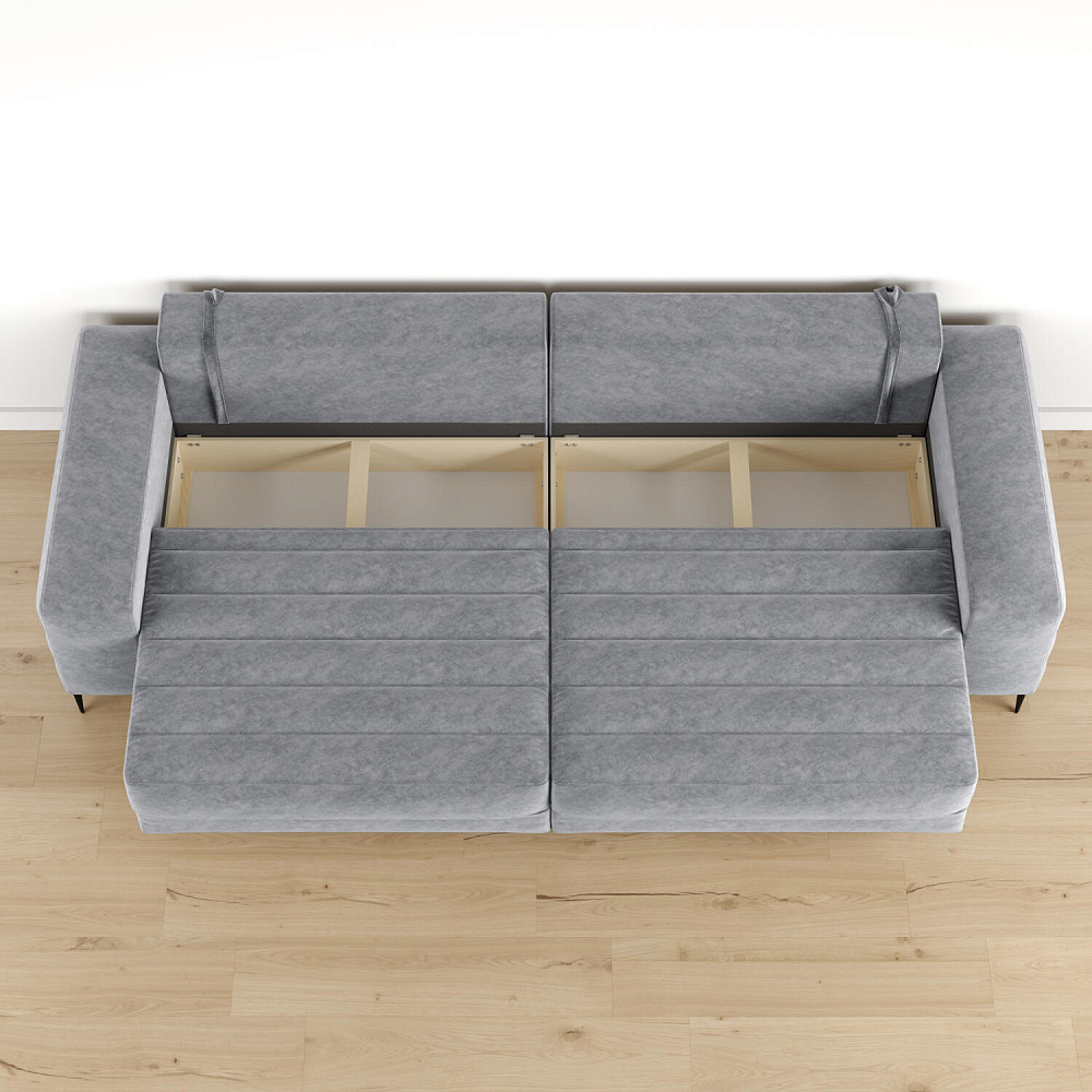 Механизм трансформации «Пантограф» подходит для ежедневного использования. Сиденье выдвигается вверх и вперед, таким образом «шагающий» механизм не оставляет следов на напольном покрытии. Дополнительные опоры добавляют устойчивости спальному месту и видны только когда диван разложен.