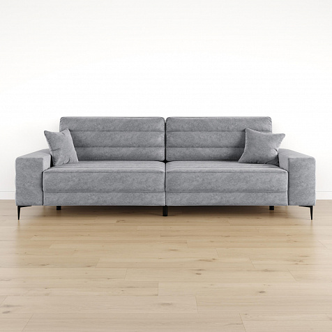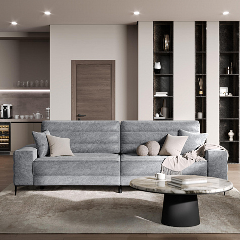 Диван «Лиам» создан для любых современных интерьеров, особенно в стиле минимализм или джапанди. Прямоугольные формы, горизонтальная строчка на каждом элементе дивана и тонкие черные опоры образуют элегантный образ. Простой в использовании механизм трансформации поможет быстро разложить диван и создать просторное спальное место. Также «Лиам» имеет вместительное место хранения под сиденьем для множества вещей.