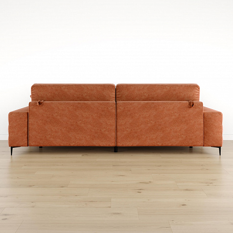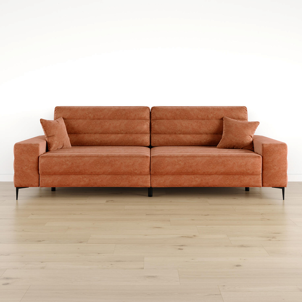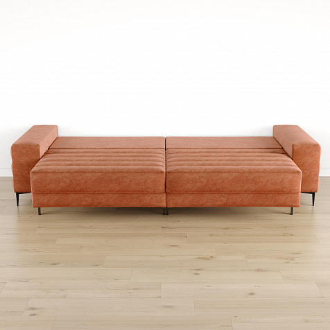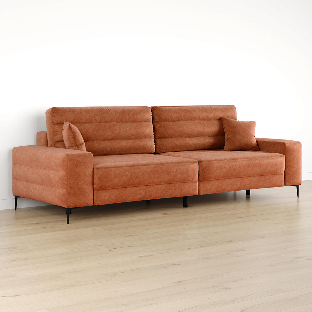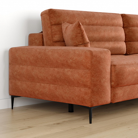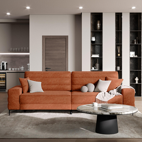 Диван «Лиам» создан для любых современных интерьеров, особенно в стиле минимализм или джапанди. Прямоугольные формы, горизонтальная строчка на каждом элементе дивана и тонкие черные опоры образуют элегантный образ. Простой в использовании механизм трансформации поможет быстро разложить диван и создать просторное спальное место. Также «Лиам» имеет вместительное место хранения под сиденьем для множества вещей.