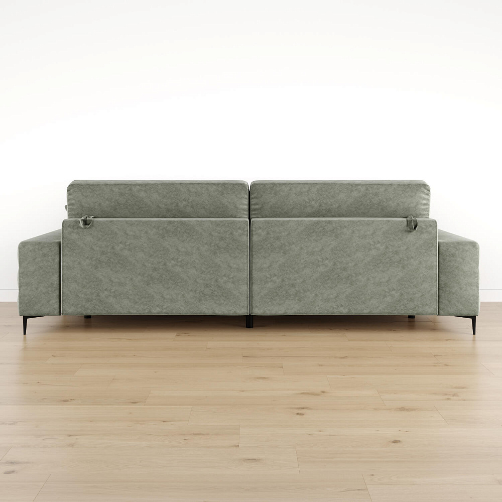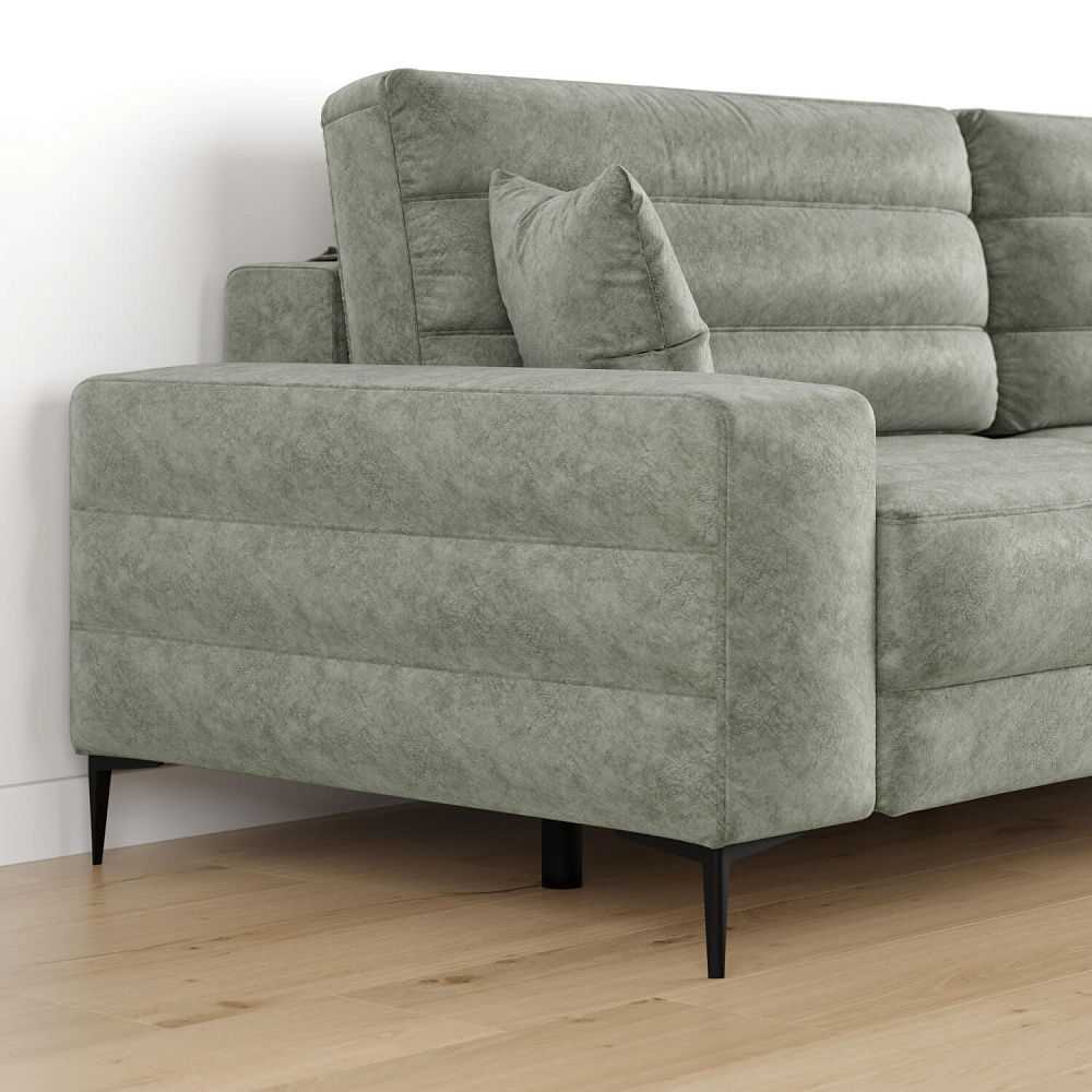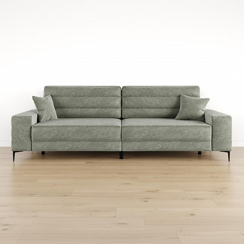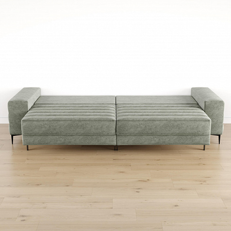 Диван «Лиам» создан для любых современных интерьеров, особенно в стиле минимализм или джапанди. Прямоугольные формы, горизонтальная строчка на каждом элементе дивана и тонкие черные опоры образуют элегантный образ. Простой в использовании механизм трансформации поможет быстро разложить диван и создать просторное спальное место. Также «Лиам» имеет вместительное место хранения под сиденьем для множества вещей.