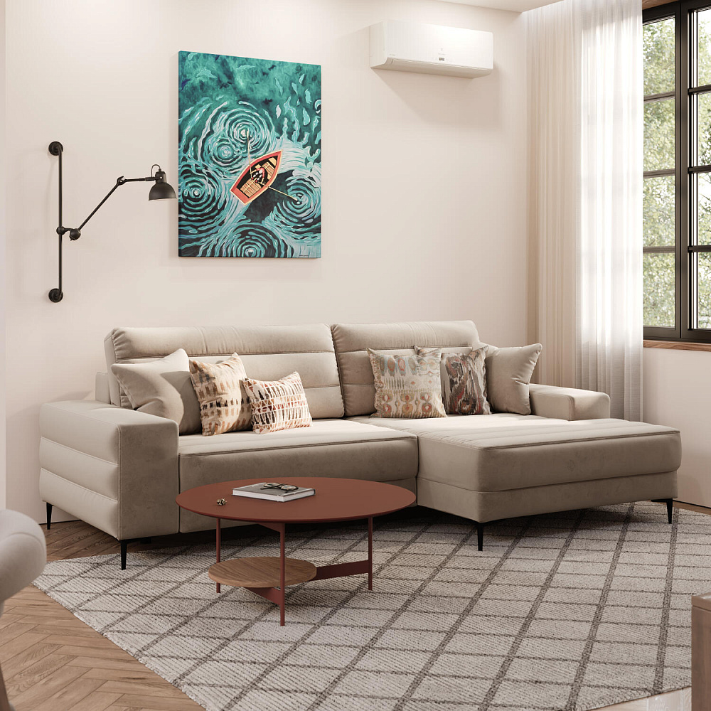 Высокие опоры — изящный элемент дизайна, который упростит уборку под диваном, в том числе с помощью робота-пылесоса.