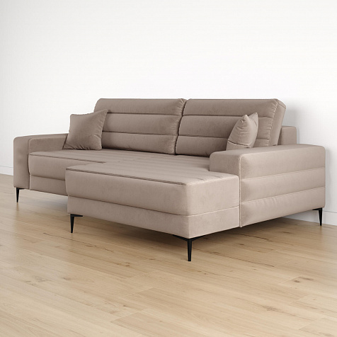 Угловой диван «Лиам» — превосходное сочетание стиля, функциональности и эргономики. Прямоугольные формы, горизонтальная строчка на каждом элементе дивана и тонкие черные опоры подчеркивают элегантный дизайн модели. Простой в использовании механизм трансформации поможет быстро разложить диван и создать просторное спальное место. Также «Лиам» имеет вместительное место хранения под сиденьем для множества вещей.