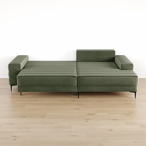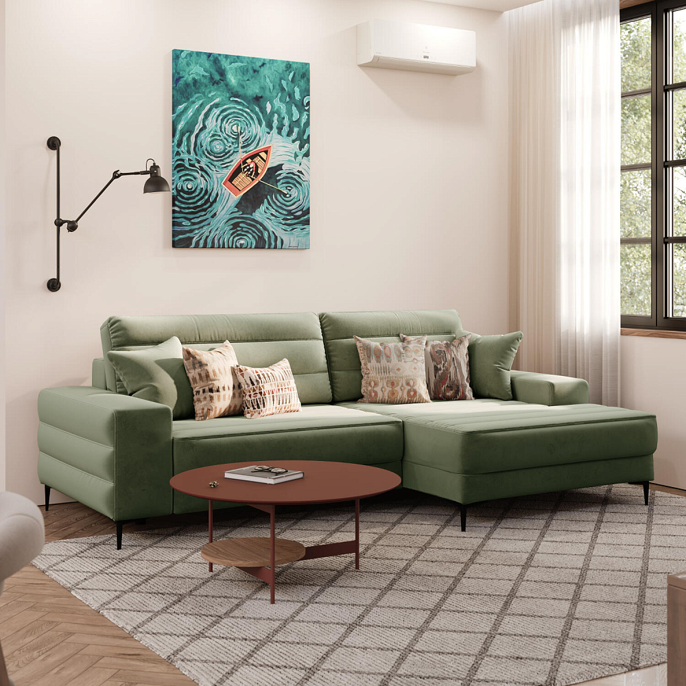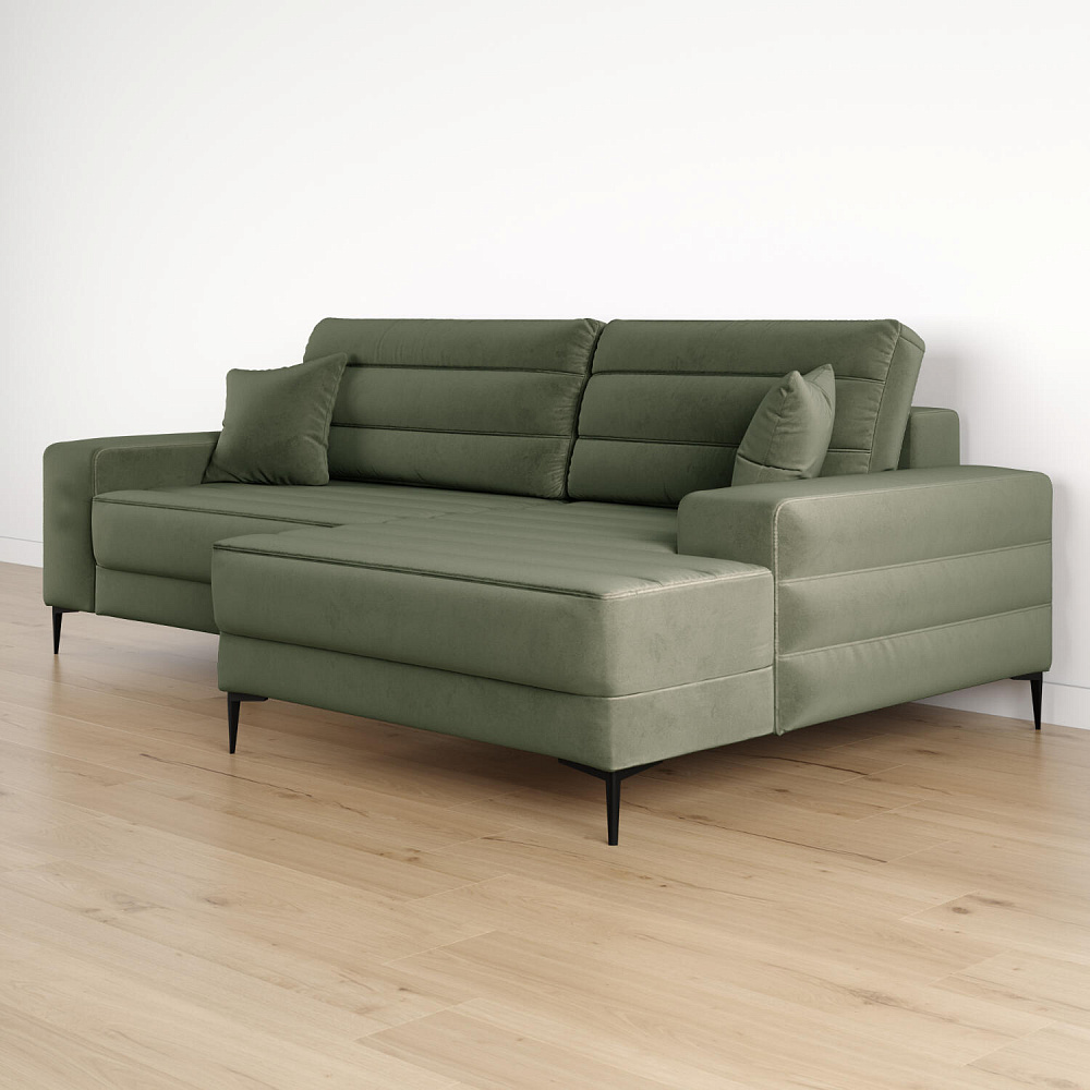 Угловой диван «Лиам» — превосходное сочетание стиля, функциональности и эргономики. Прямоугольные формы, горизонтальная строчка на каждом элементе дивана и тонкие черные опоры подчеркивают элегантный дизайн модели. Простой в использовании механизм трансформации поможет быстро разложить диван и создать просторное спальное место. Также «Лиам» имеет вместительное место хранения под сиденьем для множества вещей.
