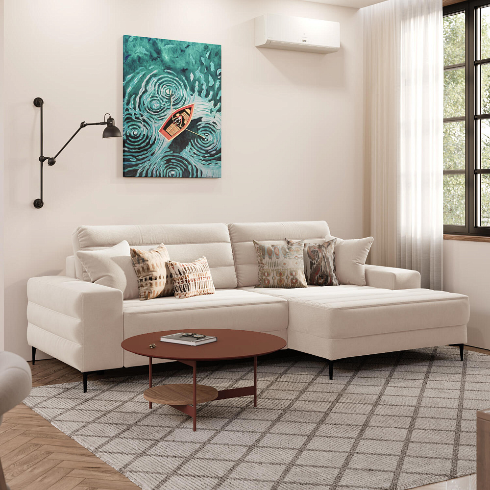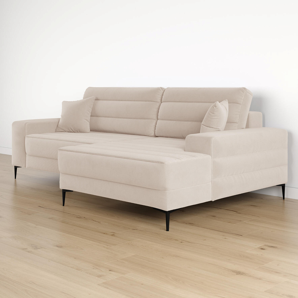Угловой диван «Лиам» — превосходное сочетание стиля, функциональности и эргономики. Прямоугольные формы, горизонтальная строчка на каждом элементе дивана и тонкие черные опоры подчеркивают элегантный дизайн модели. Простой в использовании механизм трансформации поможет быстро разложить диван и создать просторное спальное место. Также «Лиам» имеет вместительное место хранения под сиденьем для множества вещей.