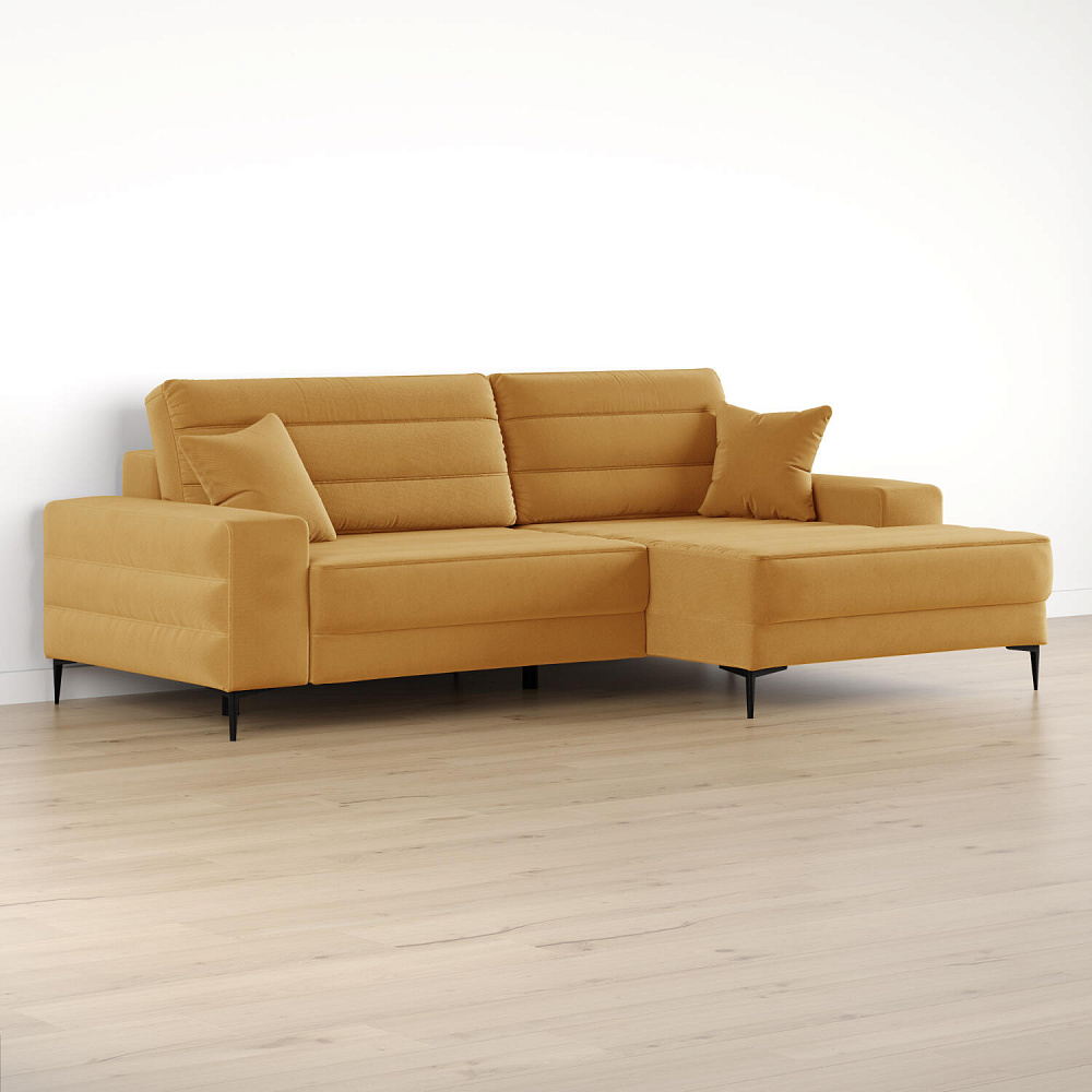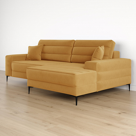 Угловой диван «Лиам» — превосходное сочетание стиля, функциональности и эргономики. Прямоугольные формы, горизонтальная строчка на каждом элементе дивана и тонкие черные опоры подчеркивают элегантный дизайн модели. Простой в использовании механизм трансформации поможет быстро разложить диван и создать просторное спальное место. Также «Лиам» имеет вместительное место хранения под сиденьем для множества вещей.