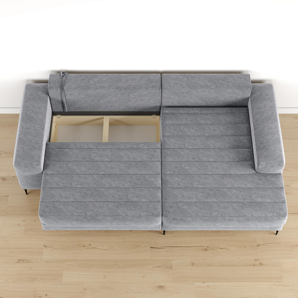 Угловой диван «Лиам» — превосходное сочетание стиля, функциональности и эргономики. Прямоугольные формы, горизонтальная строчка на каждом элементе дивана и тонкие черные опоры подчеркивают элегантный дизайн модели. Простой в использовании механизм трансформации поможет быстро разложить диван и создать просторное спальное место. Также «Лиам» имеет вместительное место хранения под сиденьем для множества вещей.