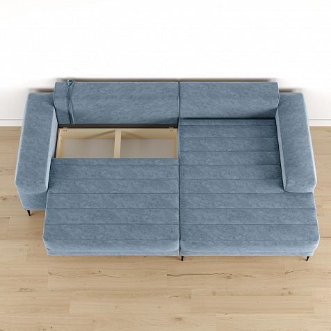 Угловой диван «Лиам» — превосходное сочетание стиля, функциональности и эргономики. Прямоугольные формы, горизонтальная строчка на каждом элементе дивана и тонкие черные опоры подчеркивают элегантный дизайн модели. Простой в использовании механизм трансформации поможет быстро разложить диван и создать просторное спальное место. Также «Лиам» имеет вместительное место хранения под сиденьем для множества вещей.