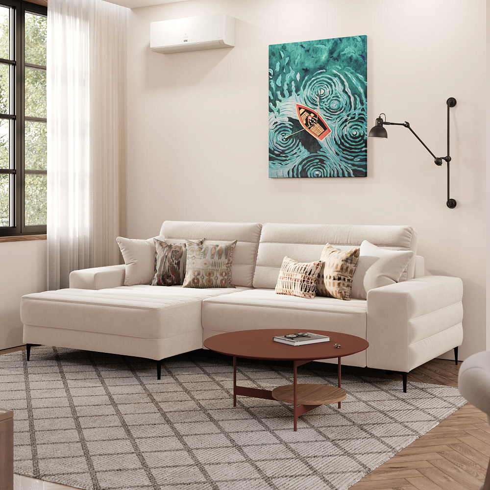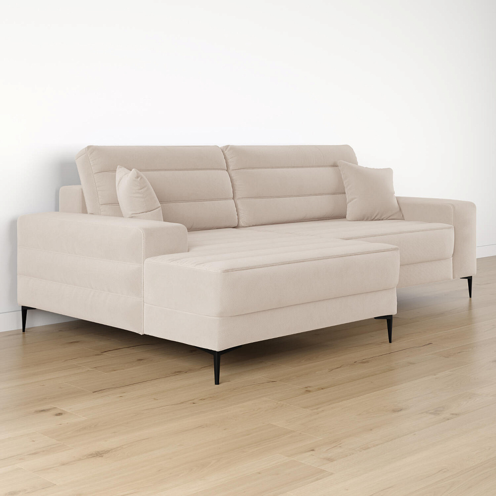 Угловой диван «Лиам» — превосходное сочетание стиля, функциональности и эргономики. Прямоугольные формы, горизонтальная строчка на каждом элементе дивана и тонкие черные опоры подчеркивают элегантный дизайн модели. Простой в использовании механизм трансформации поможет быстро разложить диван и создать просторное спальное место. Также «Лиам» имеет вместительное место хранения под сиденьем для множества вещей.