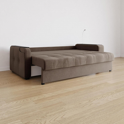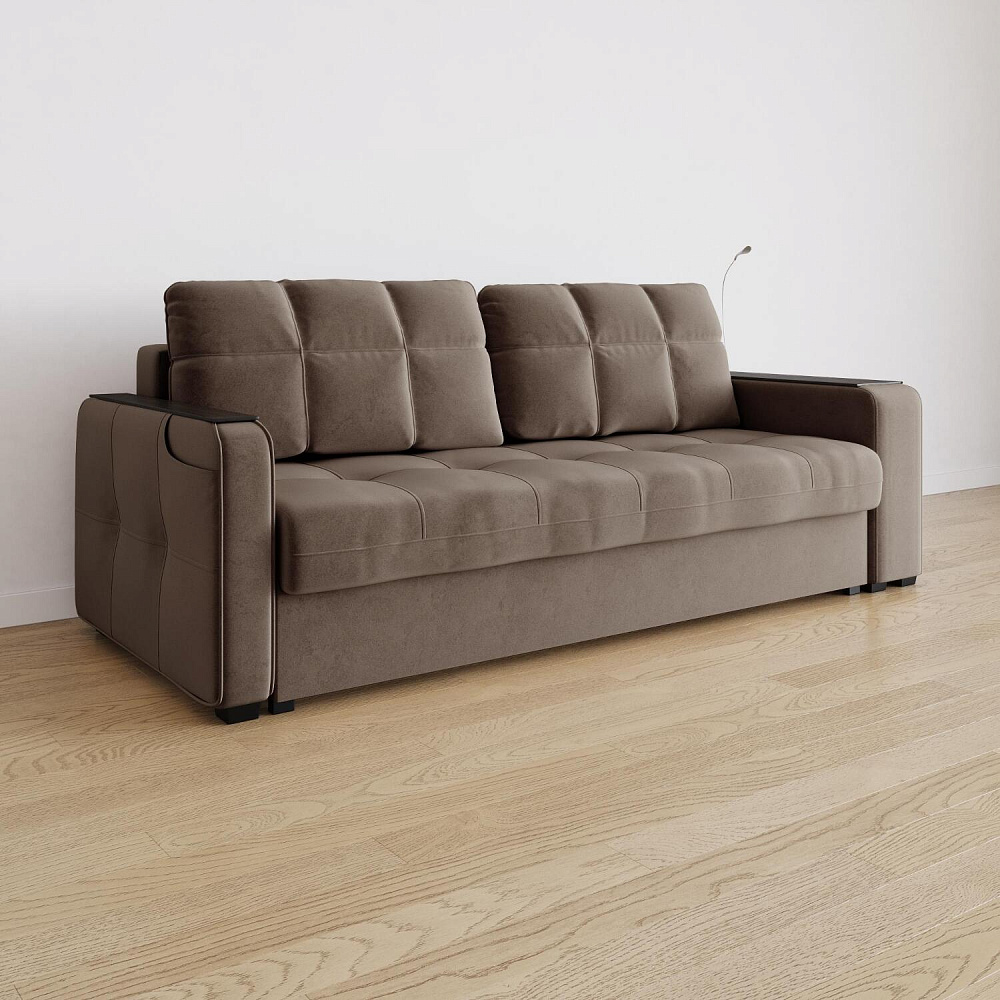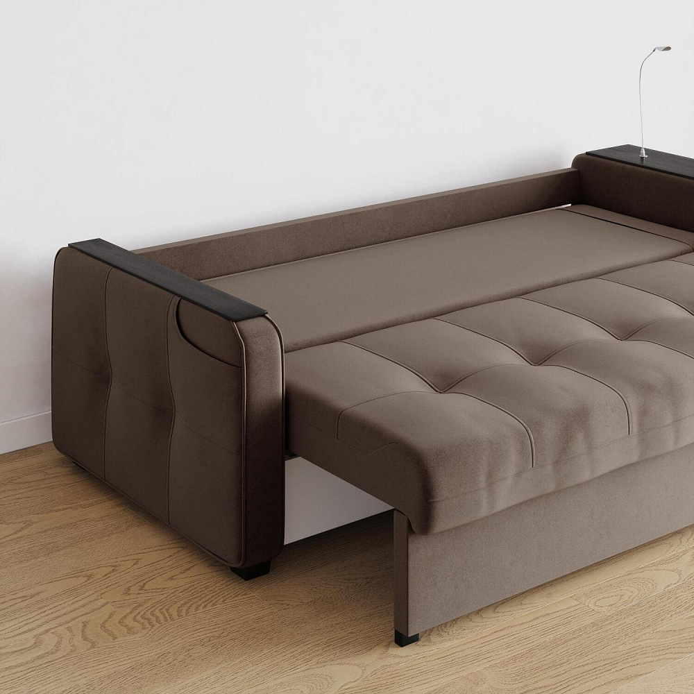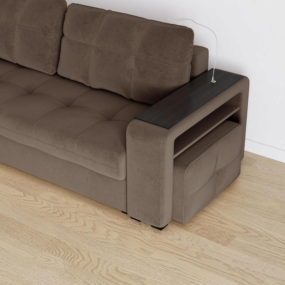 Диван «Киль» подойдёт тем, кто ищет многофункциональную модель для отдыха и работы. Модель со спальным местом и коробом для белья отличается технологичными подлокотниками, портативной лампой в комплекте и встроенным пуфиком. Вдобавок к большому функционалу диван не перегружен декором, поэтому прекрасно подойдёт к большинству современных интерьеров.