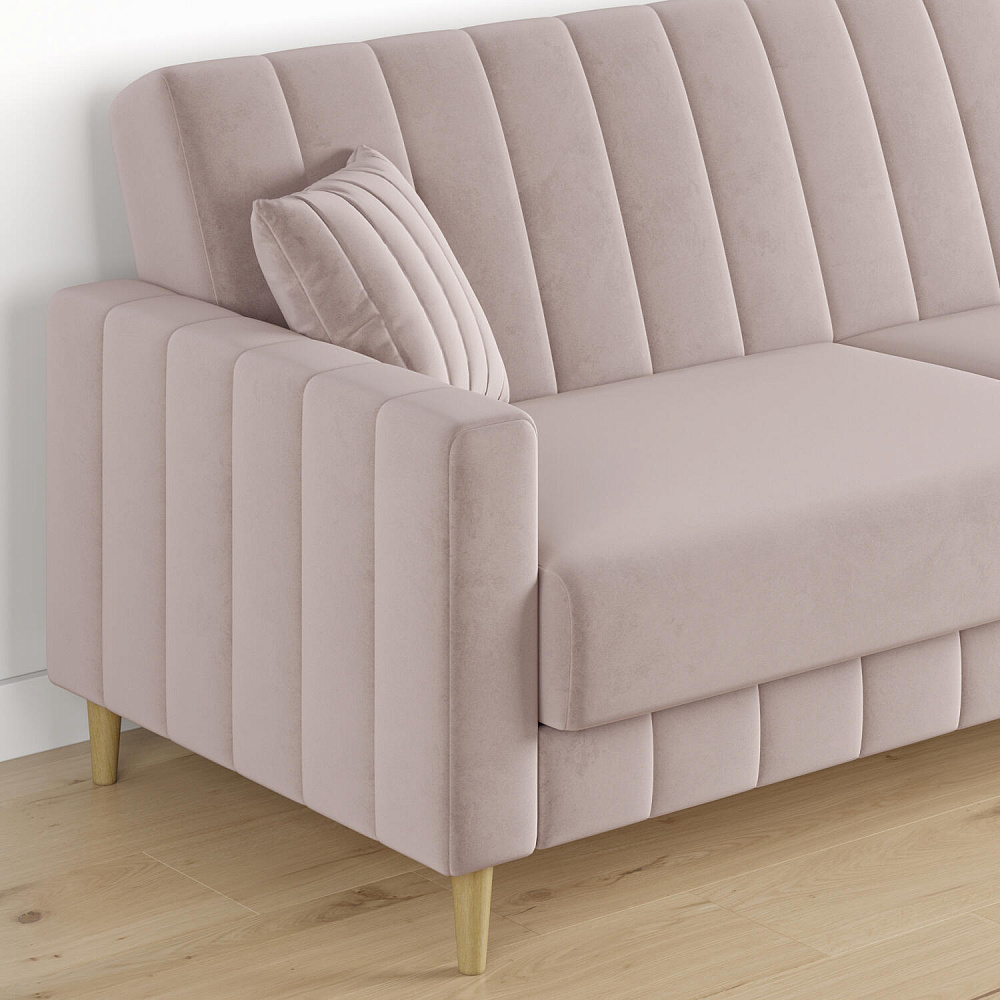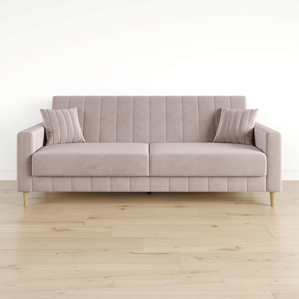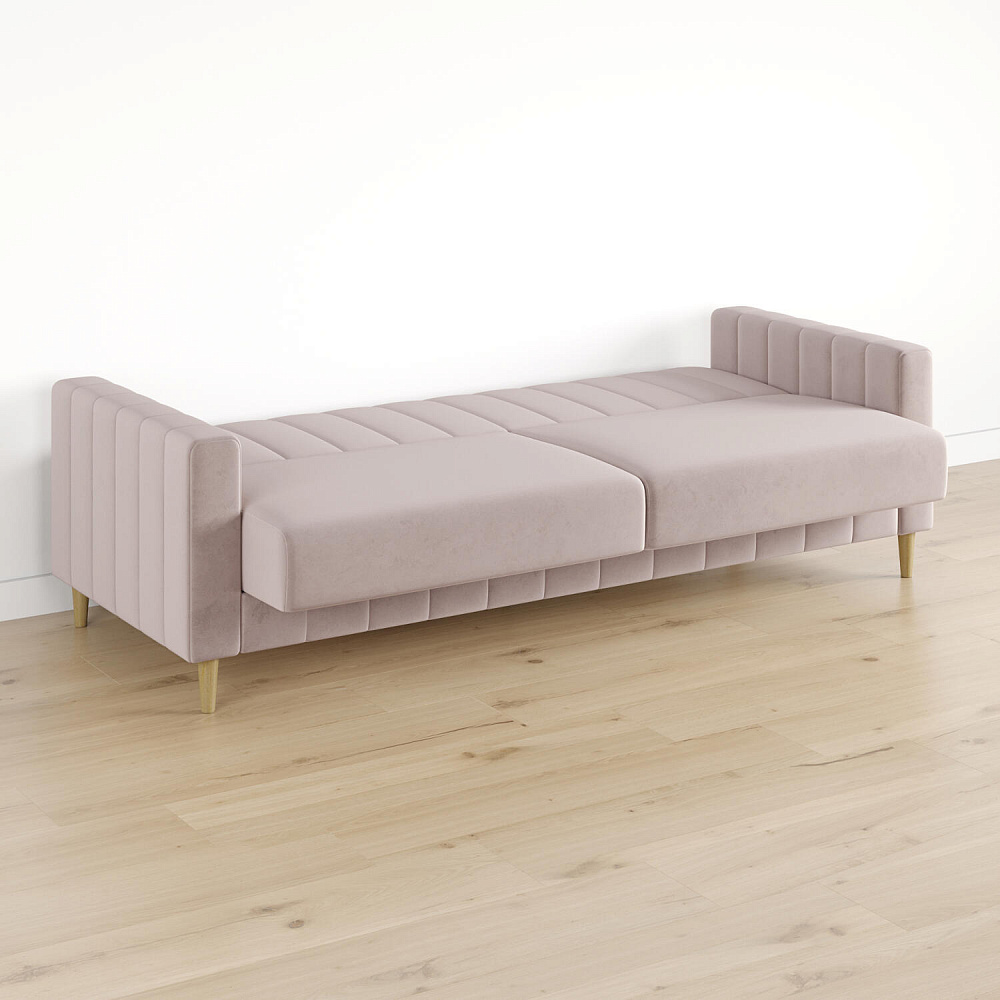 Диван-книжка «Бронкс» украсит гостиную в современном и скандинавском стиле. Модель предлагает уютный дизайн с прямыми формами, спальное место и ящик для хранения. Задняя часть спинки выполнена в основной обивочной ткани, что дает возможность свободно размещать диван и зонировать пространство комнаты. Высокие опоры из натурального дерева создают легкий эффект невесомости и облегчают процесс уборки.