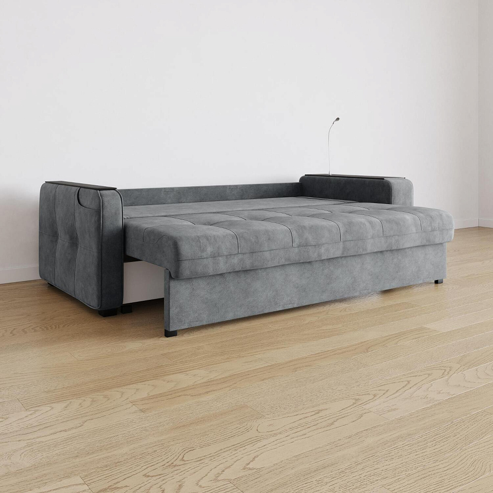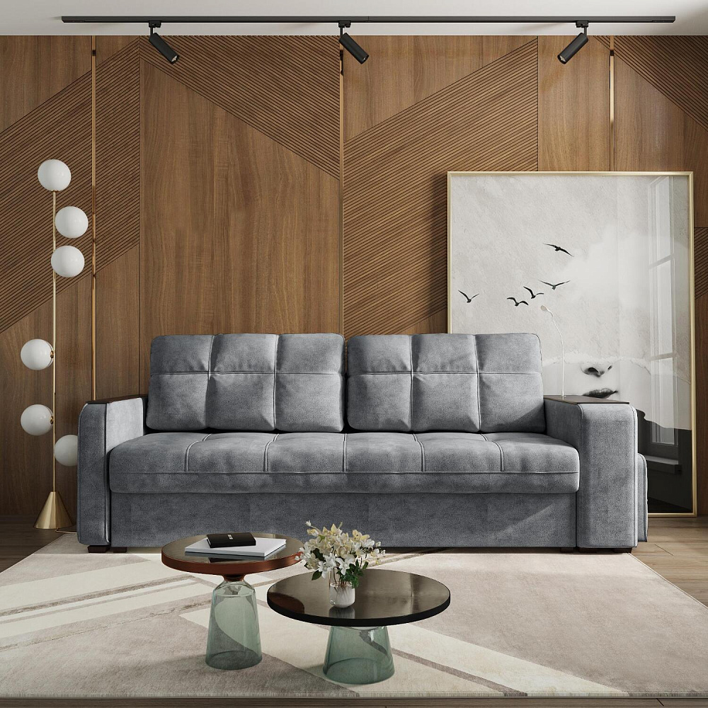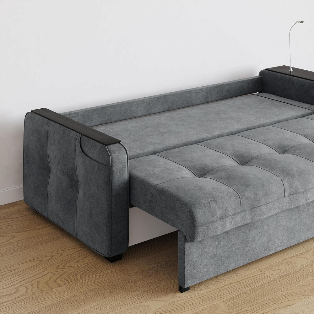 Диван «Киль» подойдёт тем, кто ищет многофункциональную модель для отдыха и работы. Модель со спальным местом и коробом для белья отличается технологичными подлокотниками, портативной лампой в комплекте и встроенным пуфиком. Вдобавок к большому функционалу диван не перегружен декором, поэтому прекрасно подойдёт к большинству современных интерьеров.