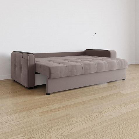 Диван «Киль» подойдёт тем, кто ищет многофункциональную модель для отдыха и работы. Модель со спальным местом и коробом для белья отличается технологичными подлокотниками, портативной лампой в комплекте и встроенным пуфиком. Вдобавок к большому функционалу диван не перегружен декором, поэтому прекрасно подойдёт к большинству современных интерьеров.