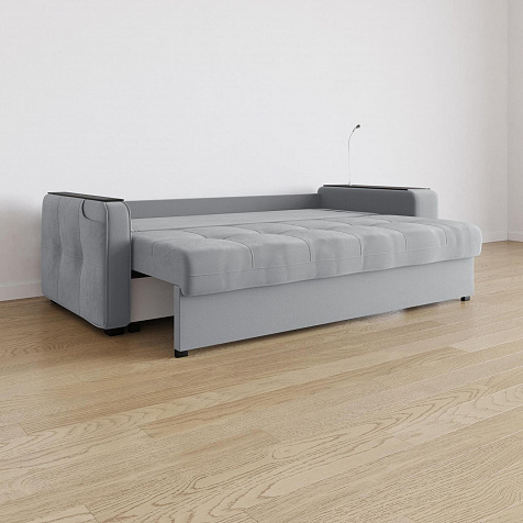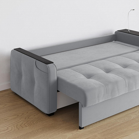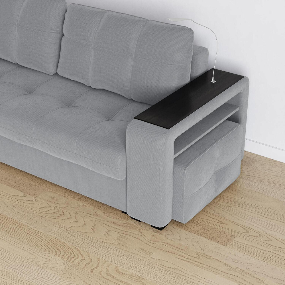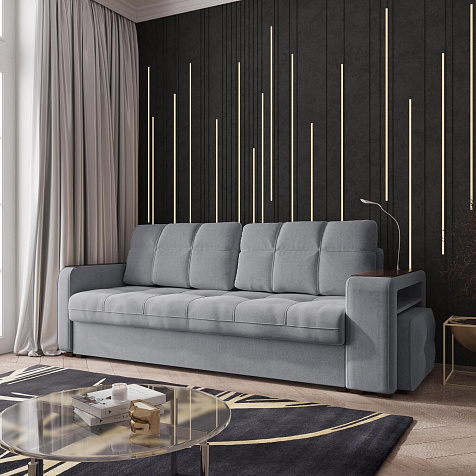 Диван «Киль» подойдёт тем, кто ищет многофункциональную модель для отдыха и работы. Модель со спальным местом и коробом для белья отличается технологичными подлокотниками, портативной лампой в комплекте и встроенным пуфиком. Вдобавок к большому функционалу диван не перегружен декором, поэтому прекрасно подойдёт к большинству современных интерьеров.