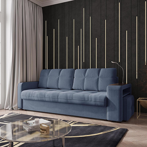 Диван «Киль» подойдёт тем, кто ищет многофункциональную модель для отдыха и работы. Модель со спальным местом и коробом для белья отличается технологичными подлокотниками, портативной лампой в комплекте и встроенным пуфиком. Вдобавок к большому функционалу диван не перегружен декором, поэтому прекрасно подойдёт к большинству современных интерьеров.