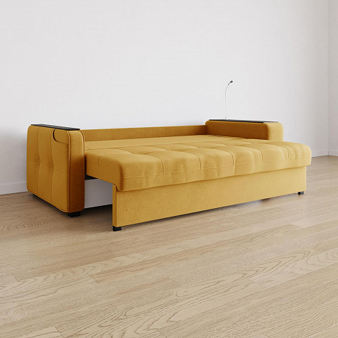 Диван «Киль» подойдёт тем, кто ищет многофункциональную модель для отдыха и работы. Модель со спальным местом и коробом для белья отличается технологичными подлокотниками, портативной лампой в комплекте и встроенным пуфиком. Вдобавок к большому функционалу диван не перегружен декором, поэтому прекрасно подойдёт к большинству современных интерьеров.