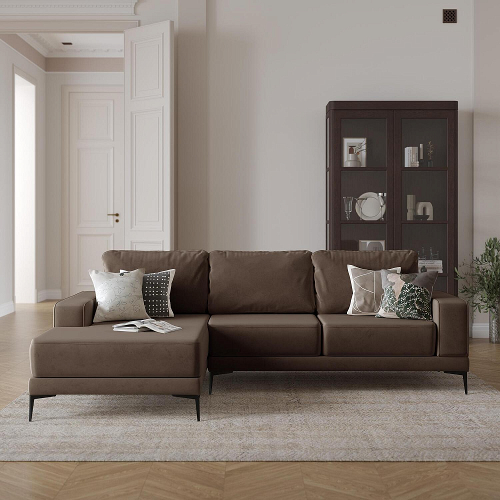 Угловой диван «Давинчи» — это прекрасное решение для стильной гостиной. При этом модель с лёгкостью трансформируется в полноценное спальное место для двух человек. Диван отличает глубокая посадка, а приспинные подушки помогут создать уютное и комфортное место для расслабления и отдыха. Элегантные металлические ножки добавляют модели изысканность стиля лаунж, а прочная и приятная на ощупь ткань обивки подарит истинное эстетическое и тактильное наслаждение.