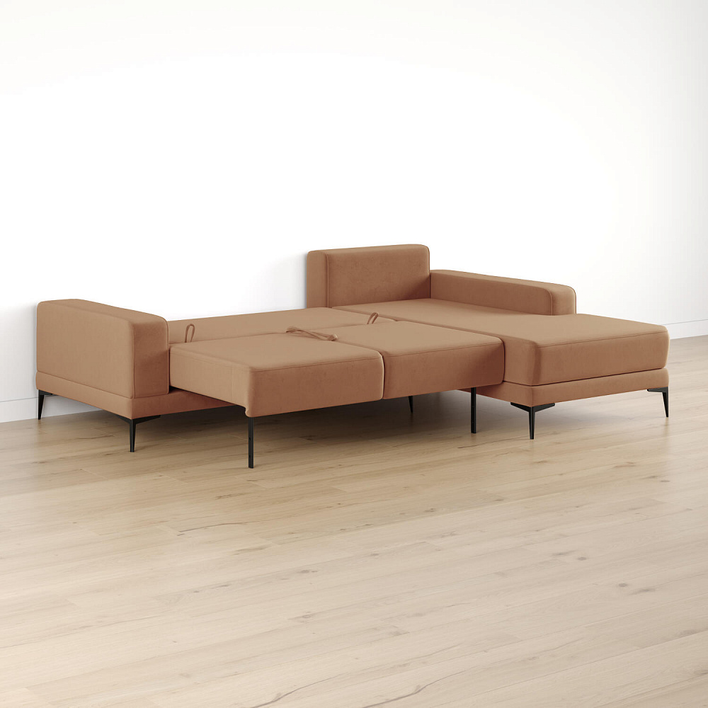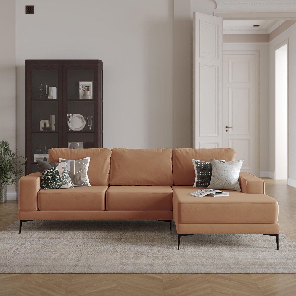 Угловой диван «Давинчи» — это прекрасное решение для стильной гостиной. При этом модель с лёгкостью трансформируется в полноценное спальное место для двух человек. Диван отличает глубокая посадка, а приспинные подушки помогут создать уютное и комфортное место для расслабления и отдыха. Элегантные металлические ножки добавляют модели изысканность стиля лаунж, а прочная и приятная на ощупь ткань обивки подарит истинное эстетическое и тактильное наслаждение.