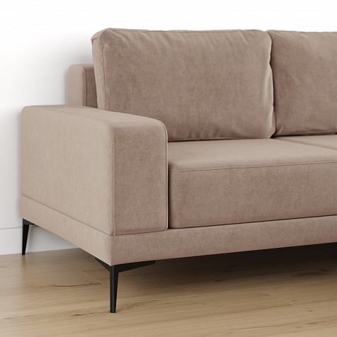 - Обивка из велюра. Обивка дивана выполнена из стильной и приятной на ощупь ткани, которая отлично пропускает воздух, хорошо тянется, устойчива к истиранию и выцветанию.