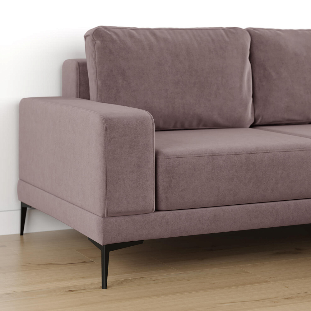 - Обивка из велюра. Обивка дивана выполнена из стильной и приятной на ощупь ткани, которая отлично пропускает воздух, хорошо тянется, устойчива к истиранию и выцветанию.