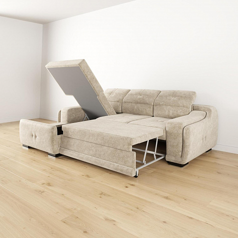Ящик для белья в шезлонге оснащён подъёмным механизмом газлифт, который прячется в специальные чехлы, защищая тем самым постельное бельё.